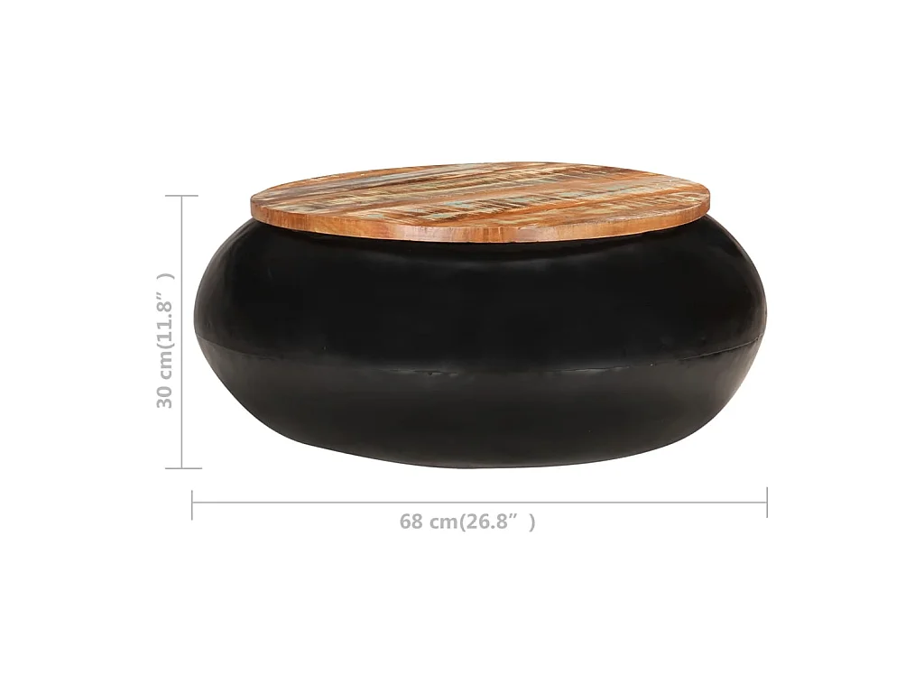 Couchtisch Beistelltisch Schwarz 68x68x30 cm Recyceltes Massivholz -MN12150