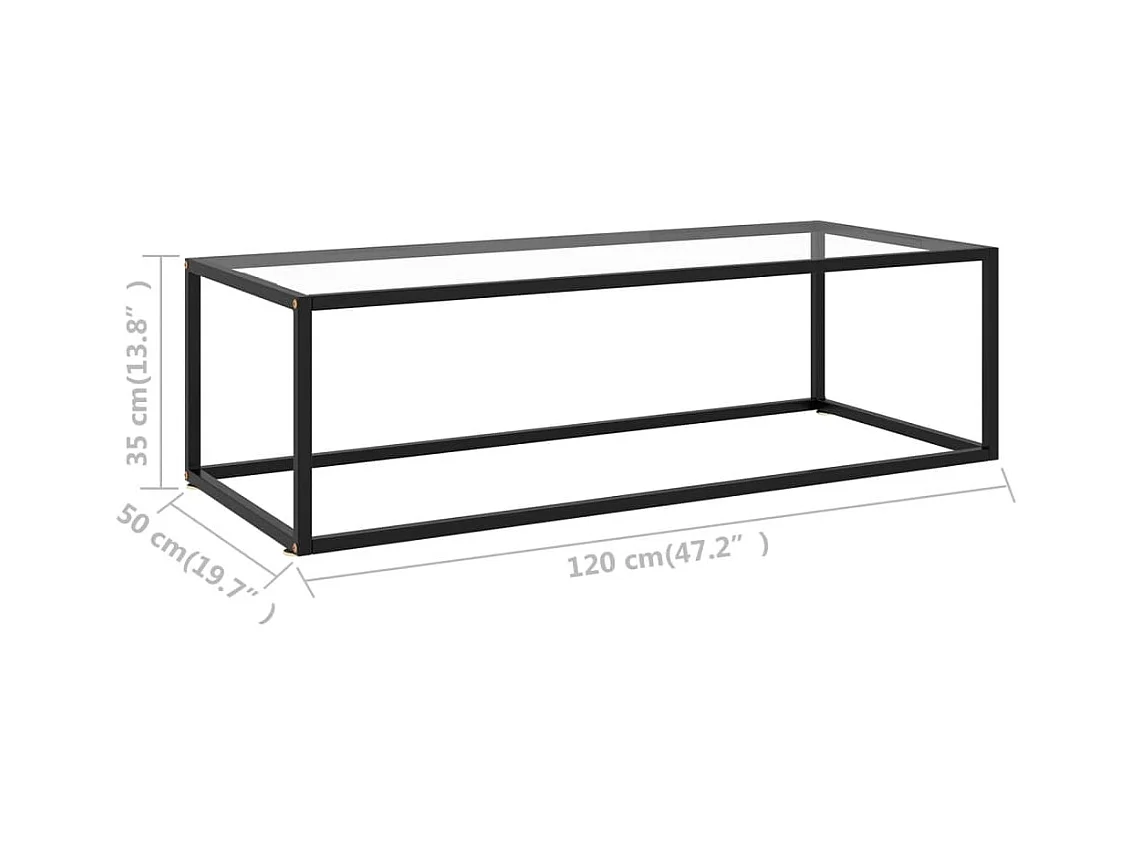 Couchtisch Beistelltisch Schwarz mit Hartglas 120x50x35 cm -MN48943
