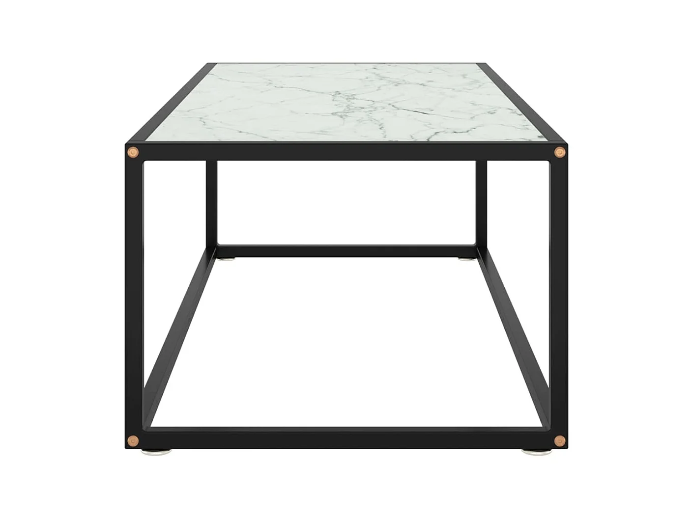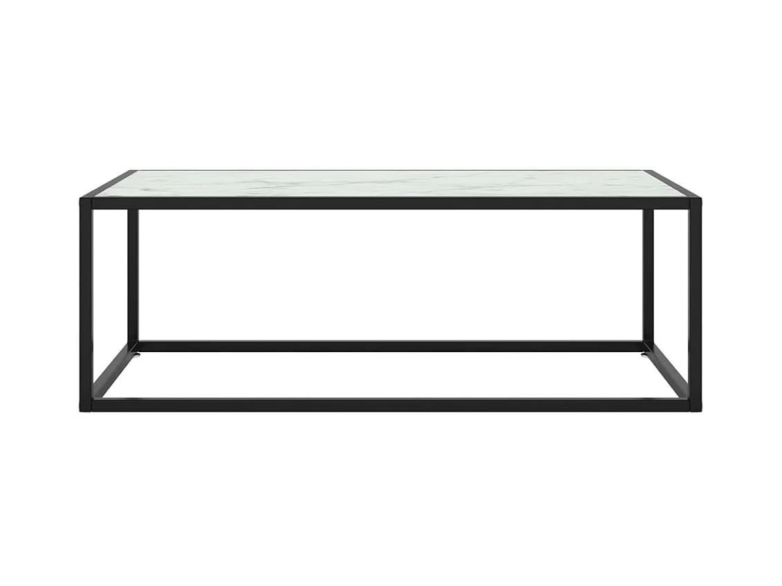 Couchtisch Beistelltisch Schwarz mit Weißem Glas in Marmor-Optik 100x50x35 cm -MN90890