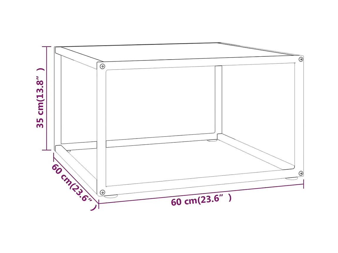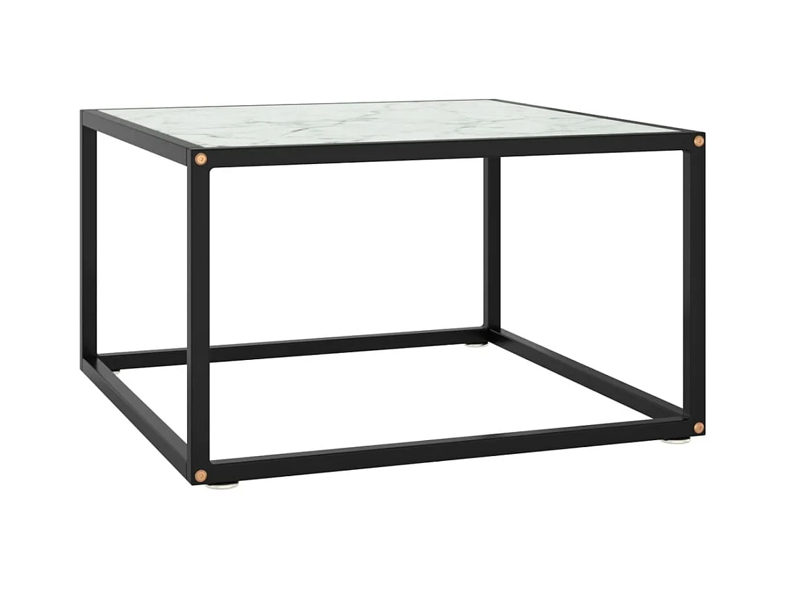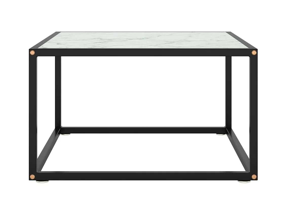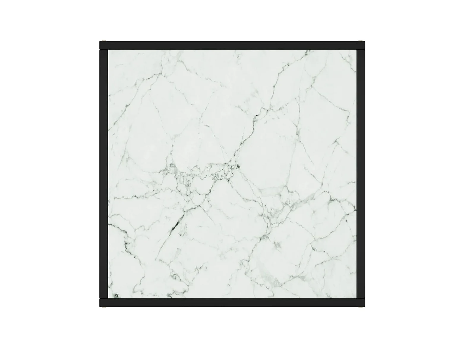 Couchtisch Beistelltisch Schwarz mit Weißem Glas in Marmor-Optik 60x60x35 cm -MN43414