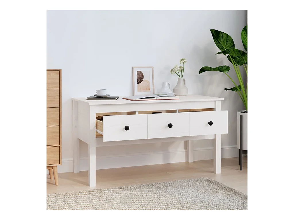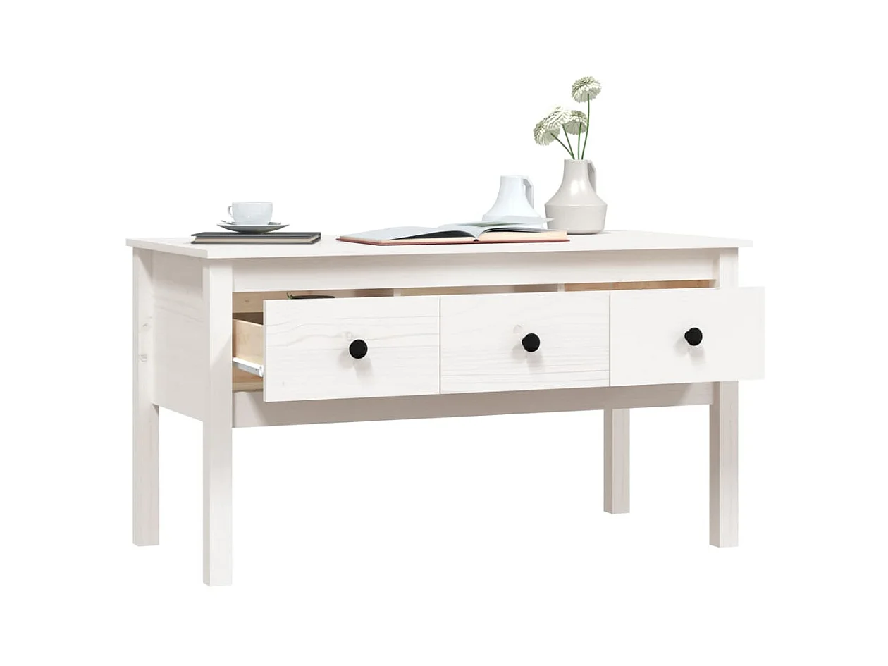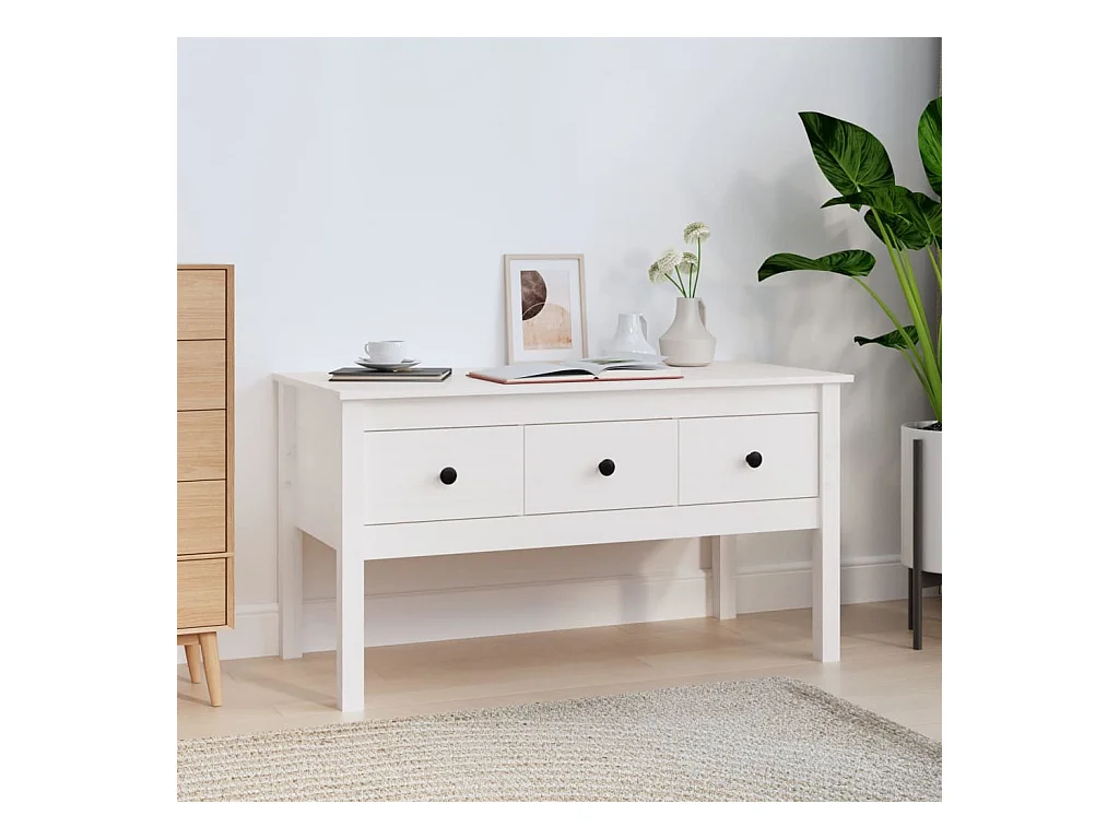 Couchtisch Beistelltisch Weiß 102x49x55 cm Massivholz Kiefer -MN72100