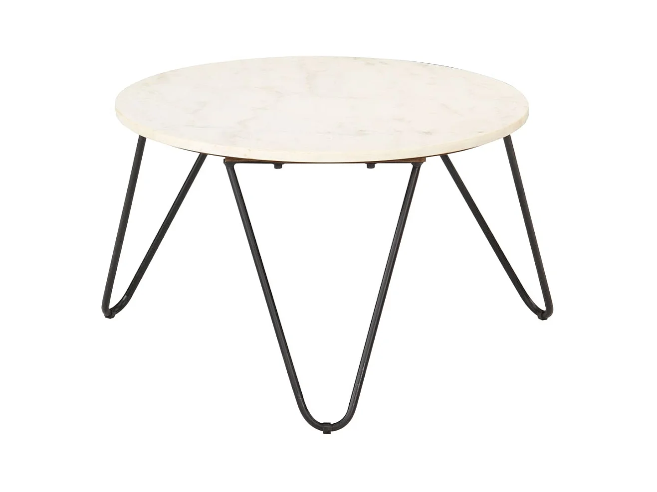 Couchtisch Beistelltisch Weiß 65x65x42 cm Echtstein in Marmoroptik -MN21681