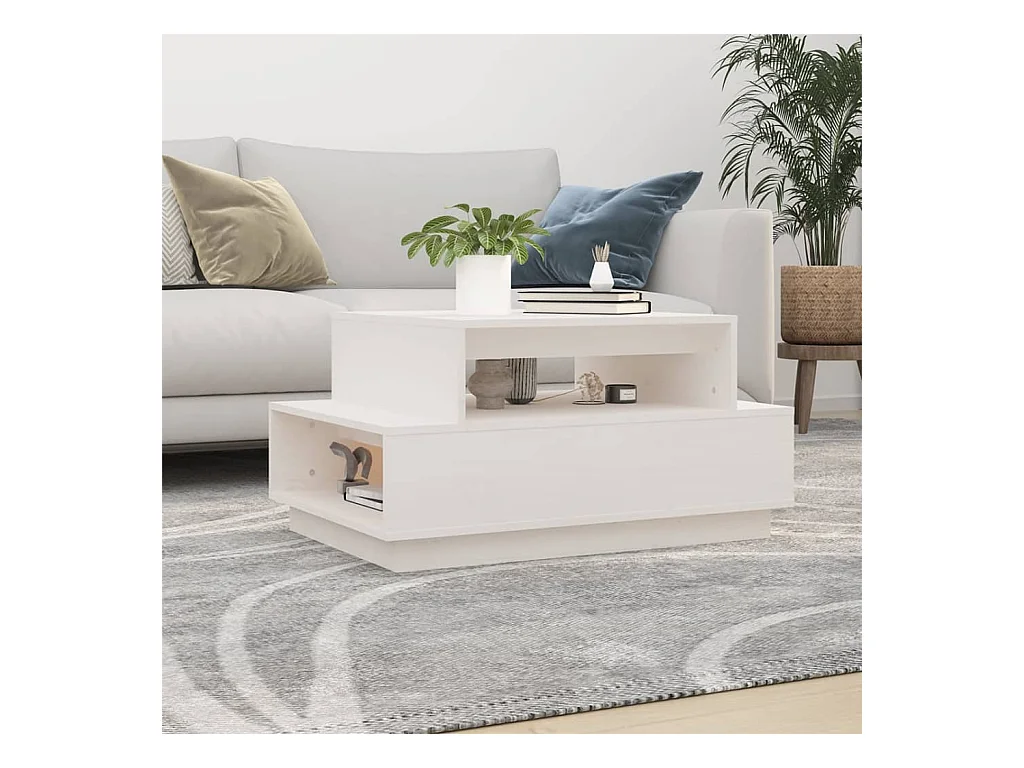 Couchtisch Beistelltisch Weiß 80x55x40,5 cm Massivholz Kiefer -MN84614