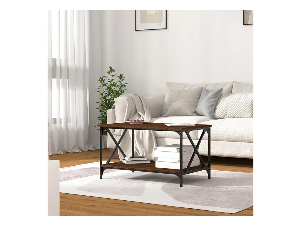 Couchtisch Braun Beistelltisch Eichen-Optik 80x50x45 cm Holzwerkstoff Eisen -MN80554