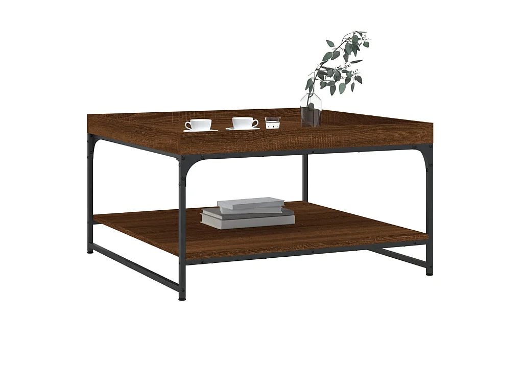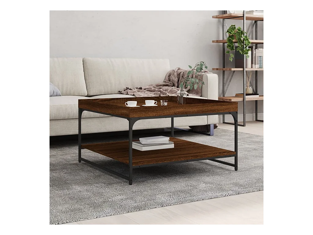 Couchtisch Braun Beistelltisch Eichen-Optik 80x80x45 cm Holzwerkstoff Eisen -MN77649