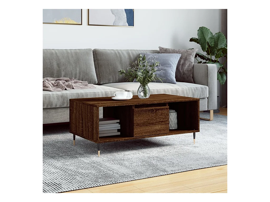 Couchtisch Braun Beistelltisch Eichen-Optik 90x50x36,5 cm Holzwerkstoff -MN20950