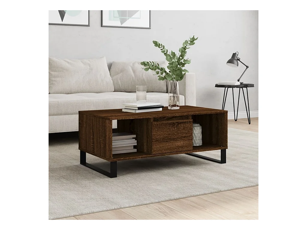 Couchtisch Braun Beistelltisch Eichen-Optik 90x50x36,5 cm Holzwerkstoff -MN48005