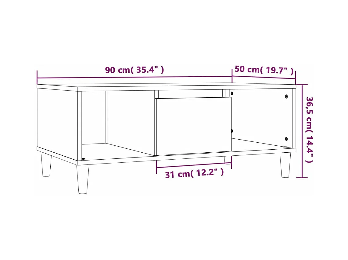 Couchtisch Braun Eichen-Optik 90x50x36,5 cm Holzwerkstoff