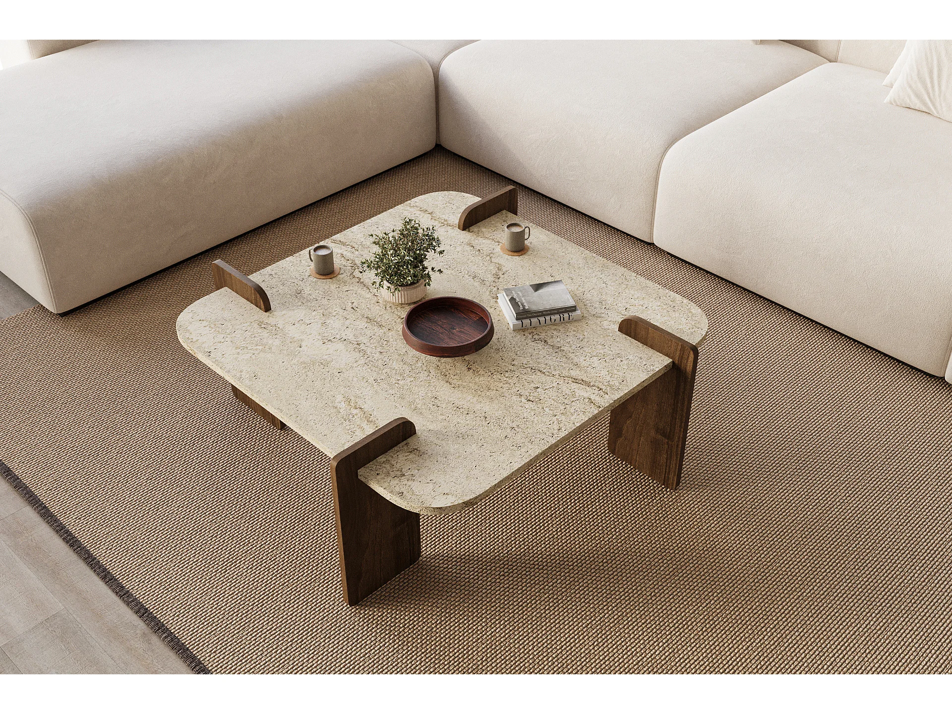 Couchtisch Brilliance Travertin Braun Granit Optik 90x90