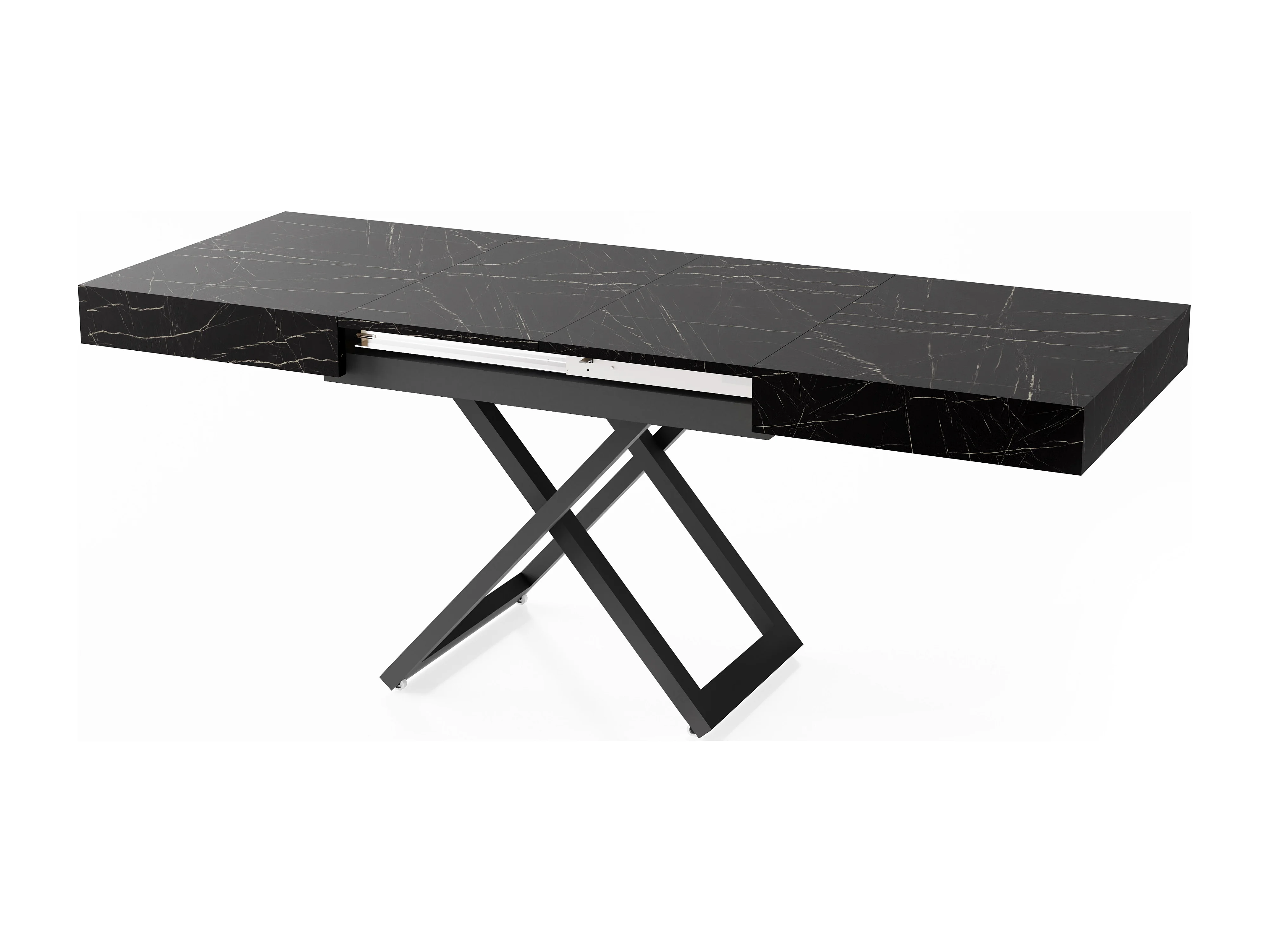 Couchtisch Höhenverstellbar und Ausziehbar Cavetta U Schwarz in Marmoroptik - Wohnzimmertisch Esstisch Multifunktionstisch 120-200/80/27-76 cm - Marmor Schwarz