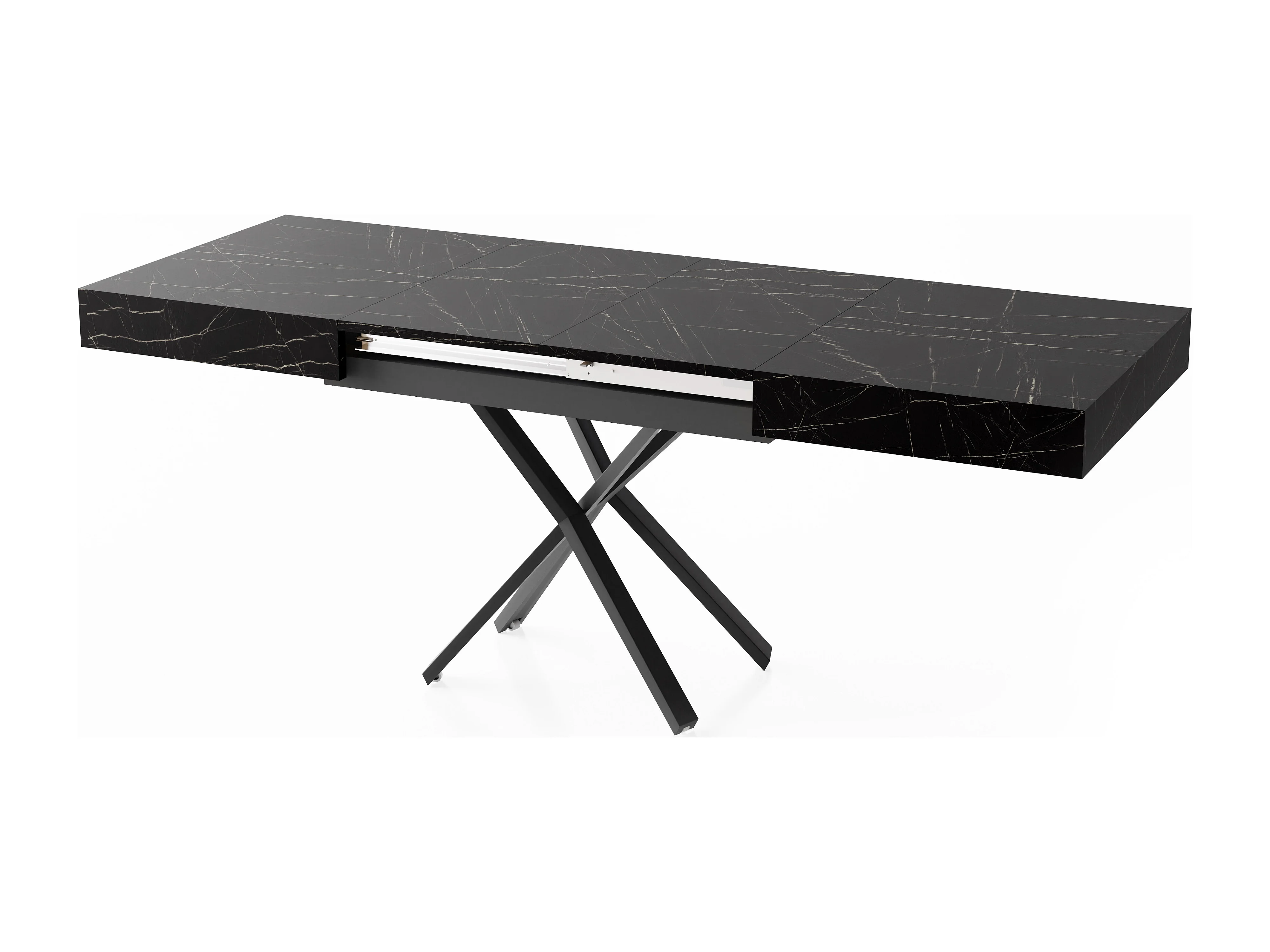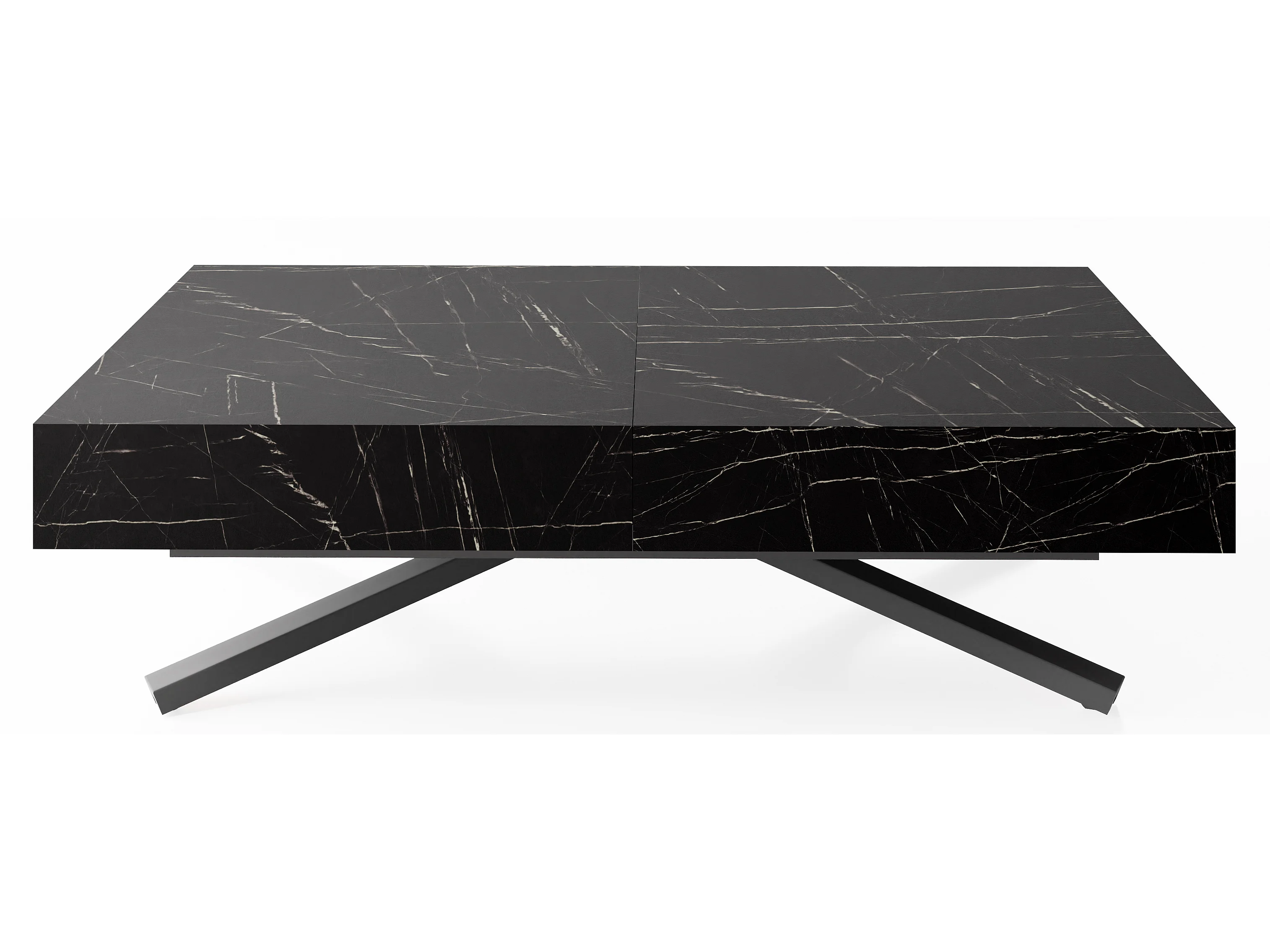 Couchtisch Höhenverstellbar und Ausziehbar Cavetta X in Marmoroptik Schwarz - Wohnzimmertisch Esstisch Multifunktionstisch 120-200/80/27-76 cm - Marmor Schwarz