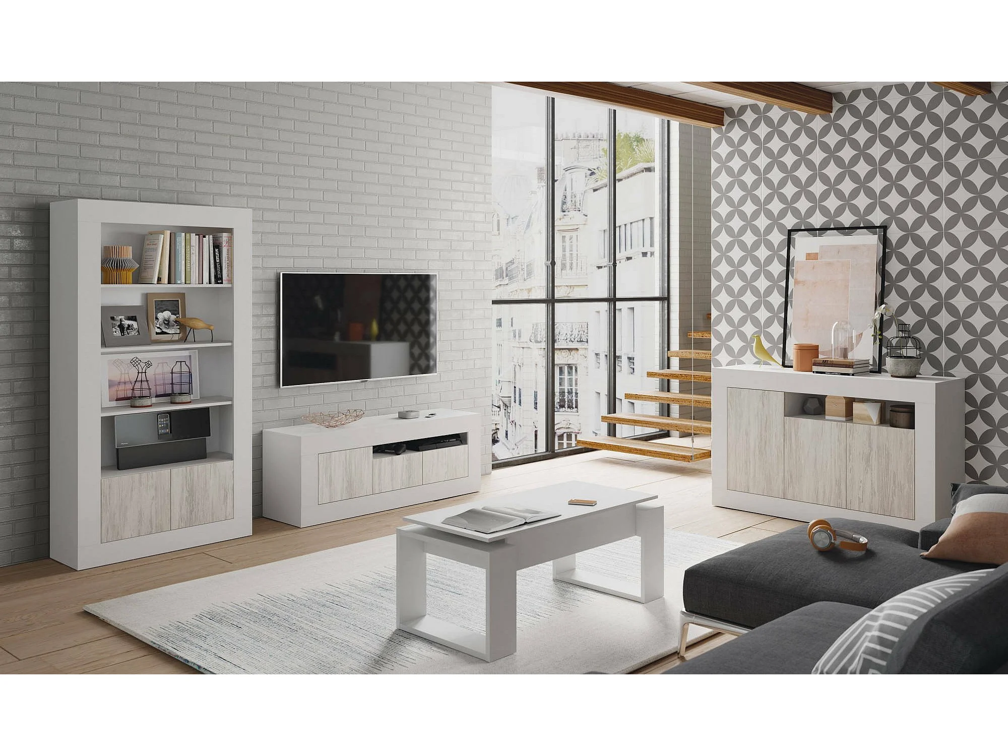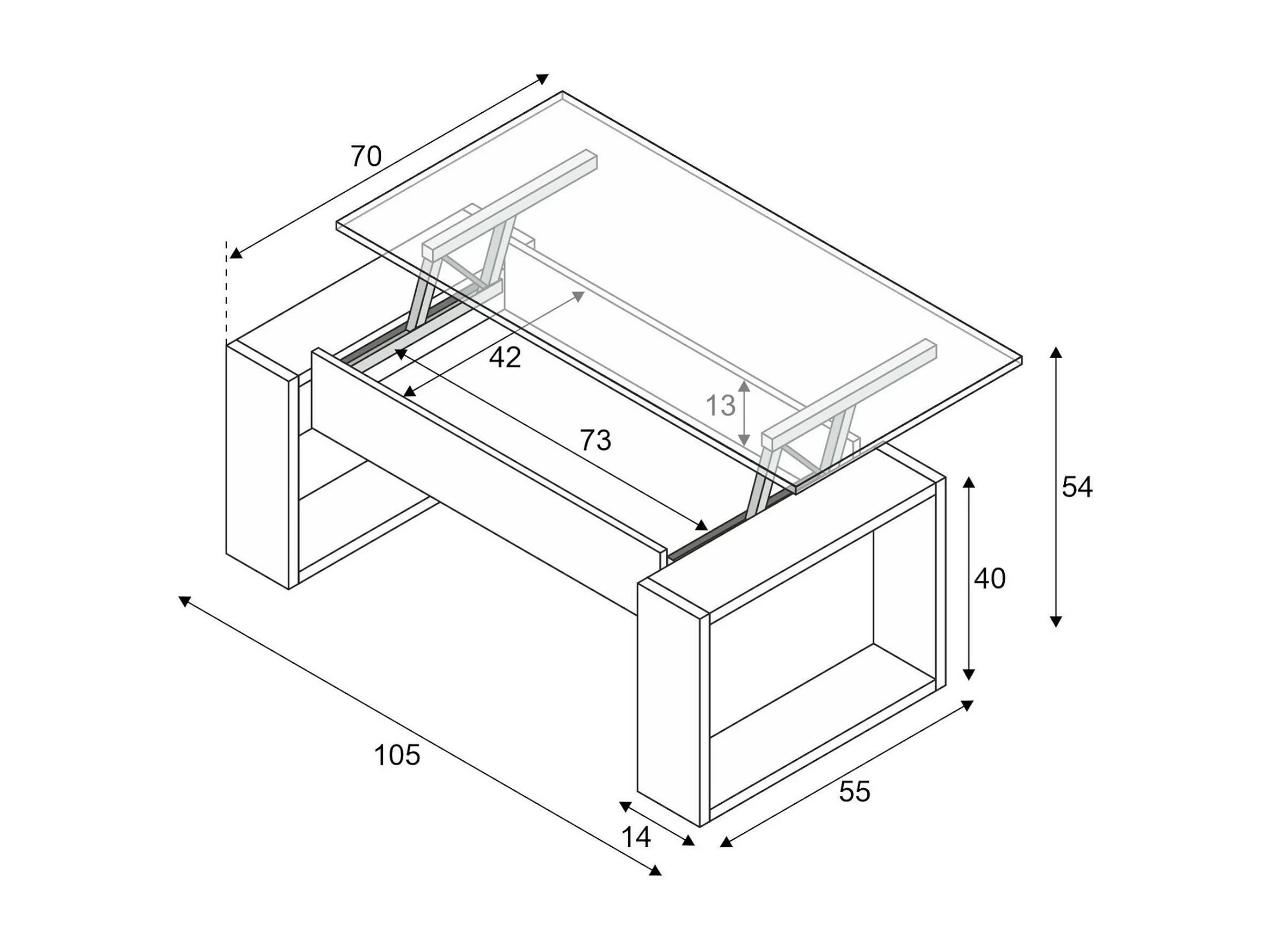 Couchtisch Ddav, Couchtisch mit abnehmbarer Platte, Couchtisch für das Wohnzimmer, 105x55h45/56 cm, Weiß