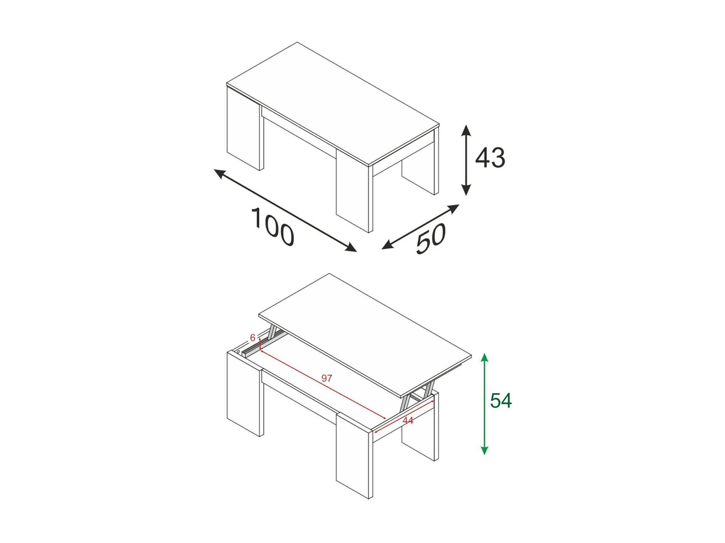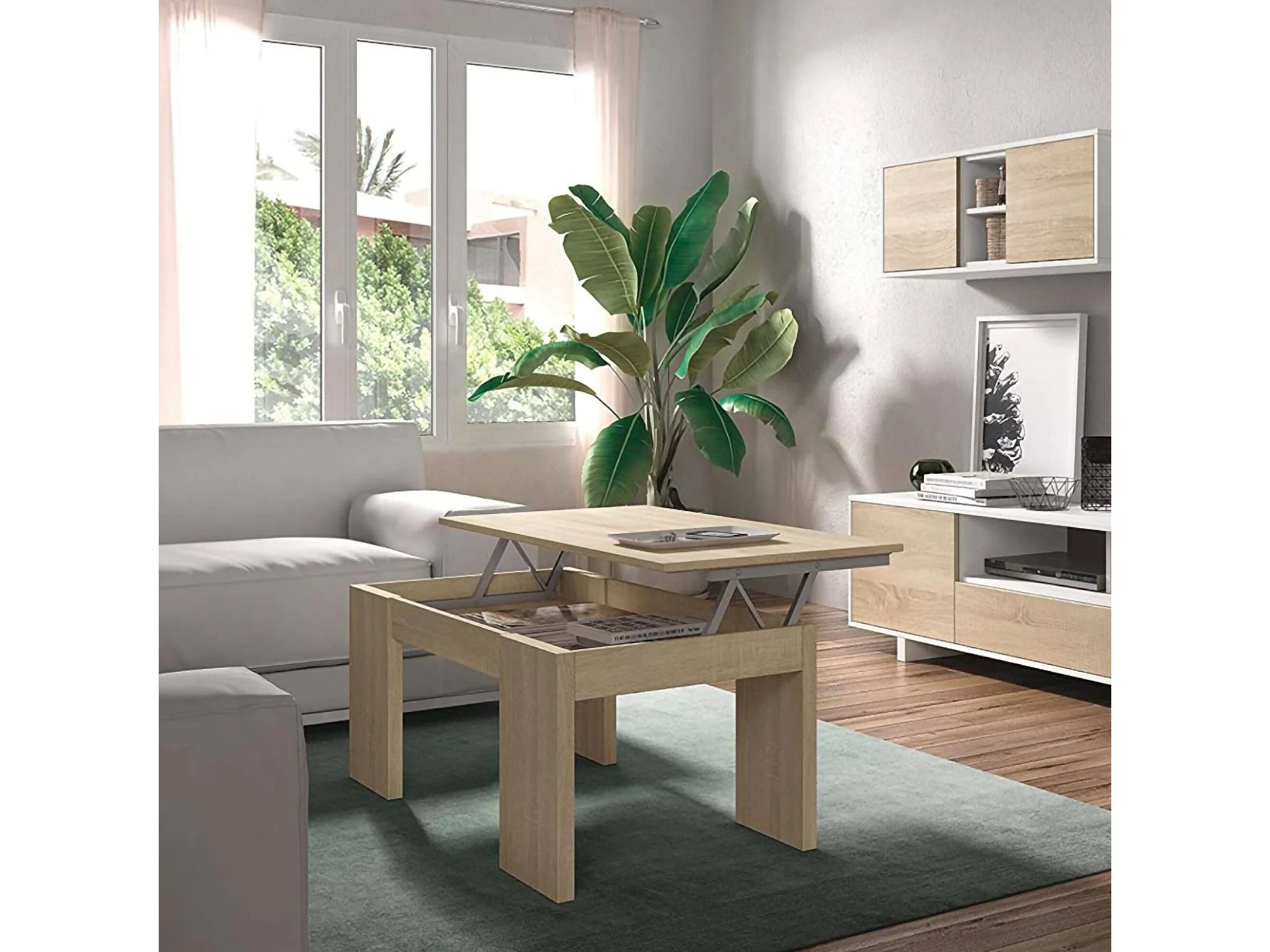 Couchtisch Dgollin, Couchtisch mit abnehmbarer Platte, Couchtisch für das Wohnzimmer, 100x50h43/84 cm, Eiche