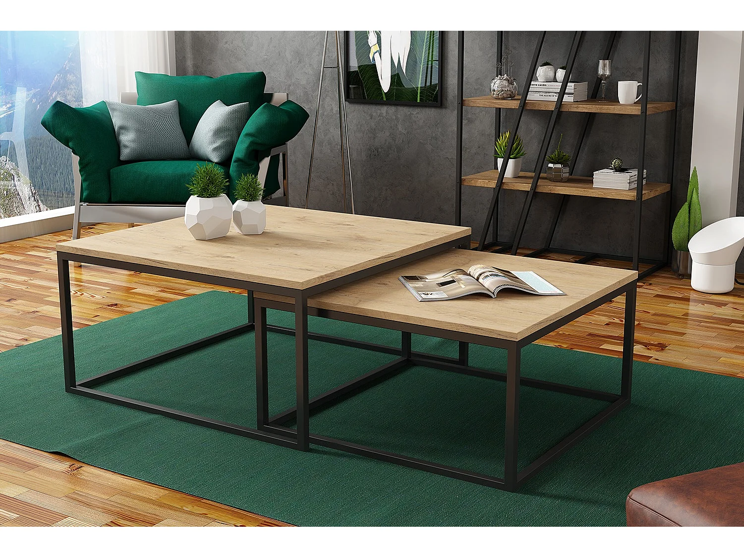 COUCHTISCH Dual Eiche Lancelot / Schwarz (2er-Set)