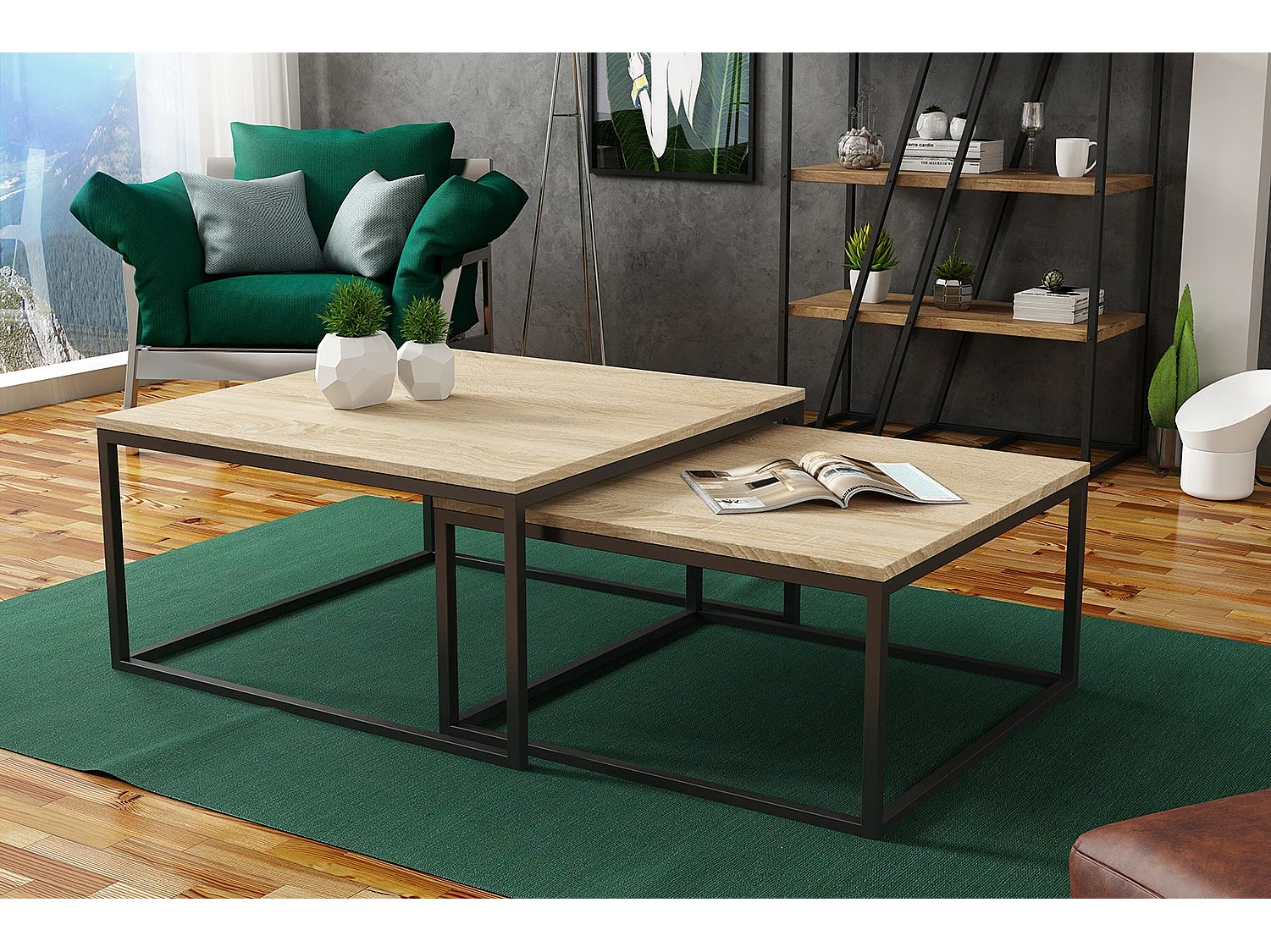 COUCHTISCH Dual Sonoma Eiche / Schwarz (2er-Set)