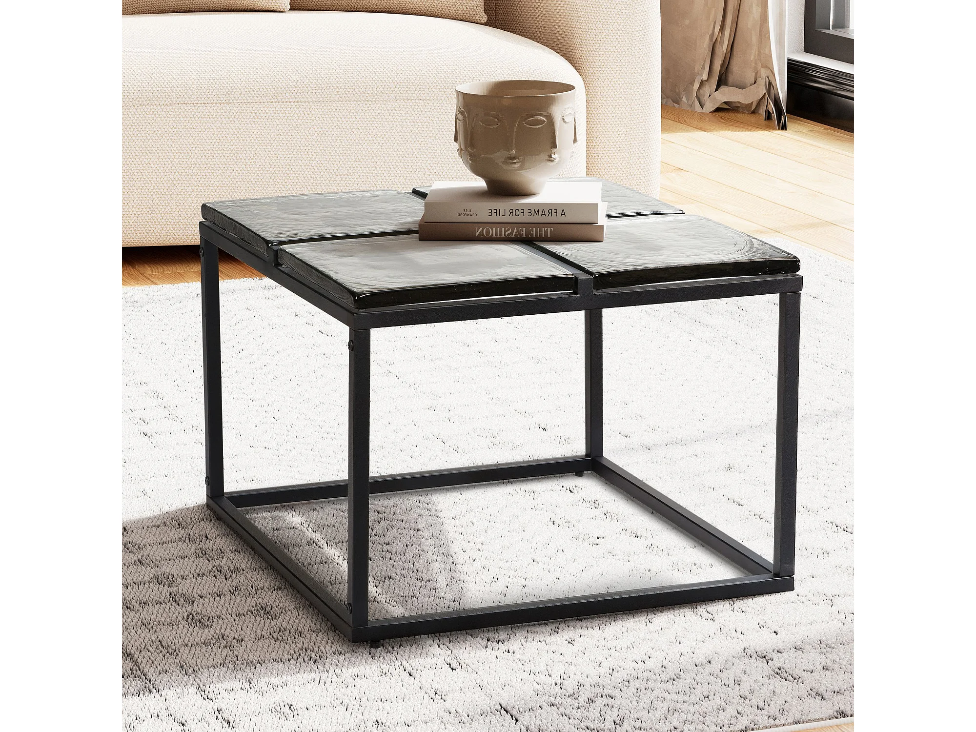 Couchtisch Glas Metall 58x58x43,5 cm Sofatisch Schwarz, Design Wohnzimmertisch Quadratisch,