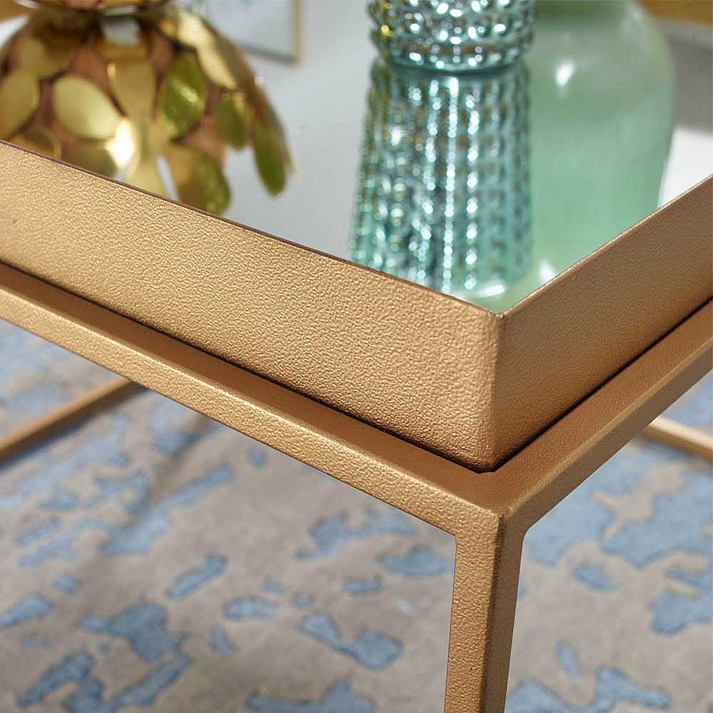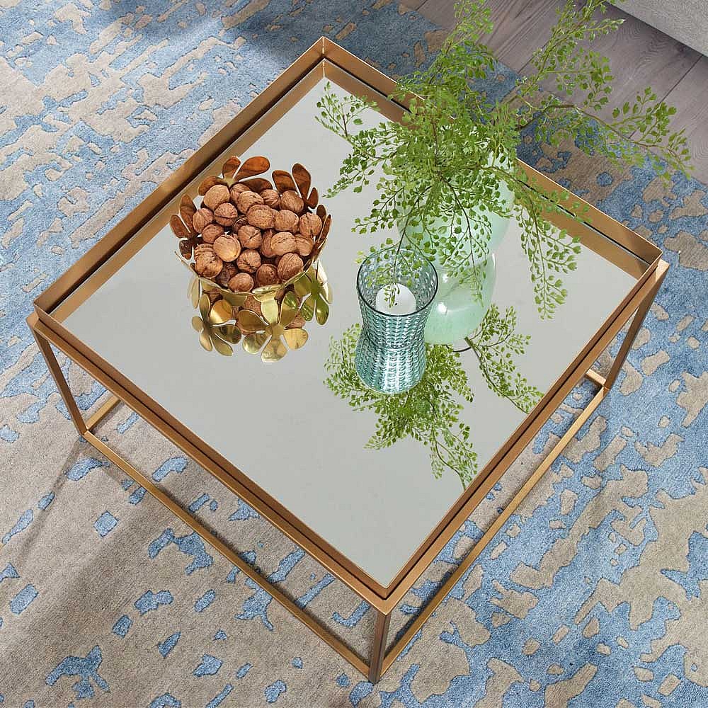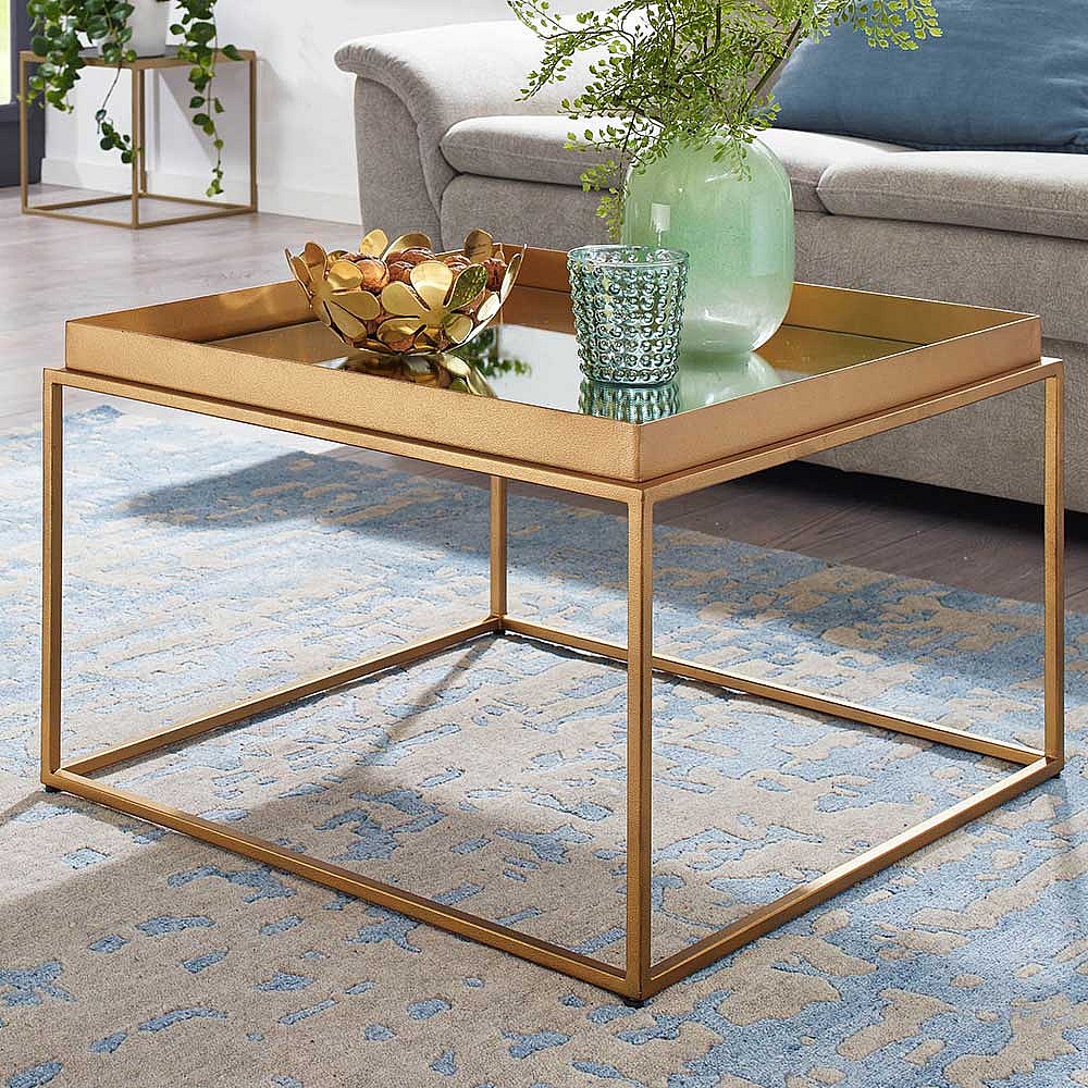 Couchtisch Glas Metall Gold mit Bügelgestell Spiegelglas Platte