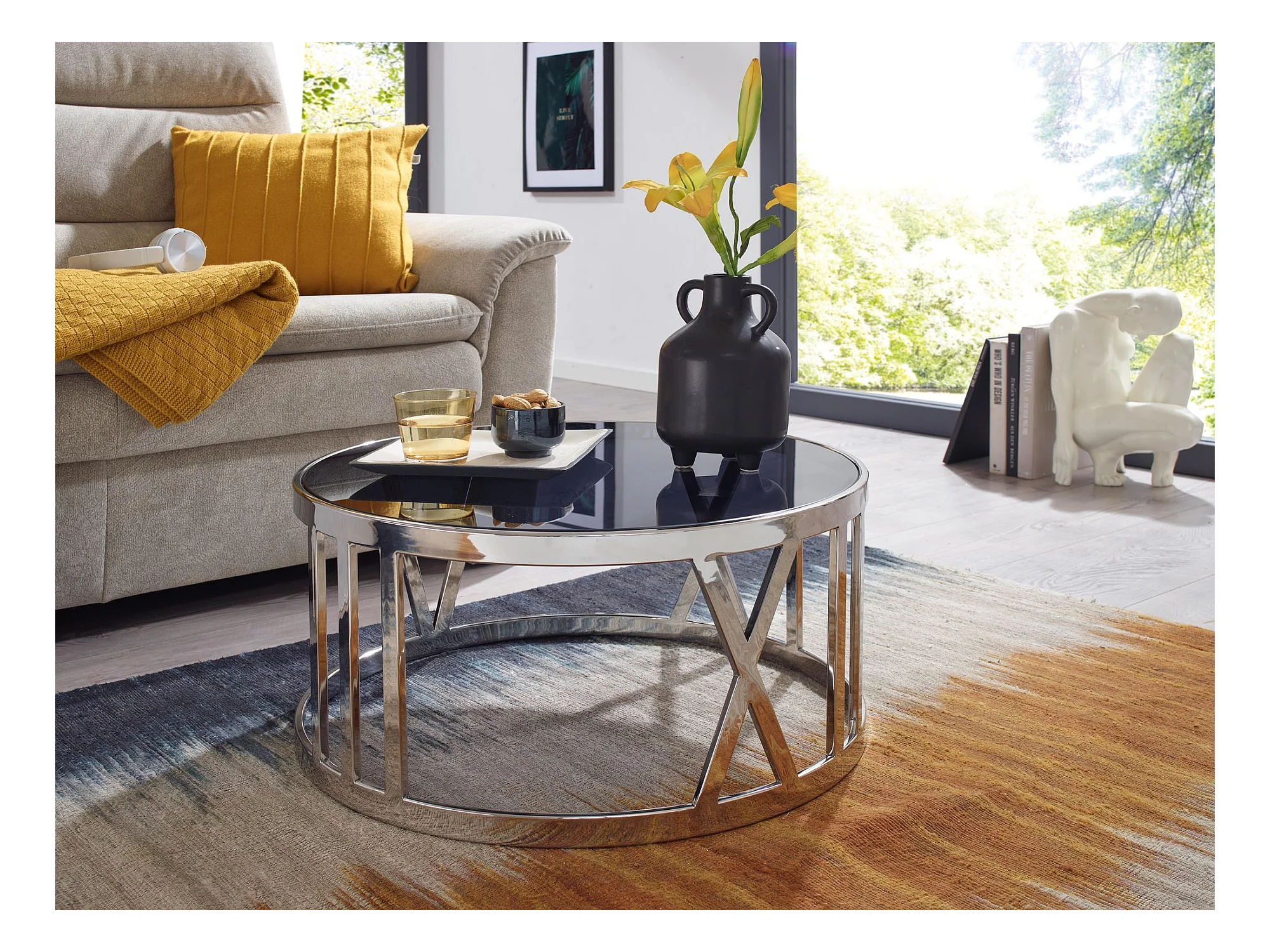 Couchtisch Glas Metall Sofatisch Ø60cm Tisch Wohnzimmertisch Rund Modern