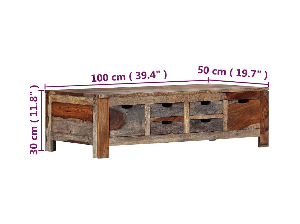 Couchtisch Grau 100x50x30 cm Massivholz Akazie