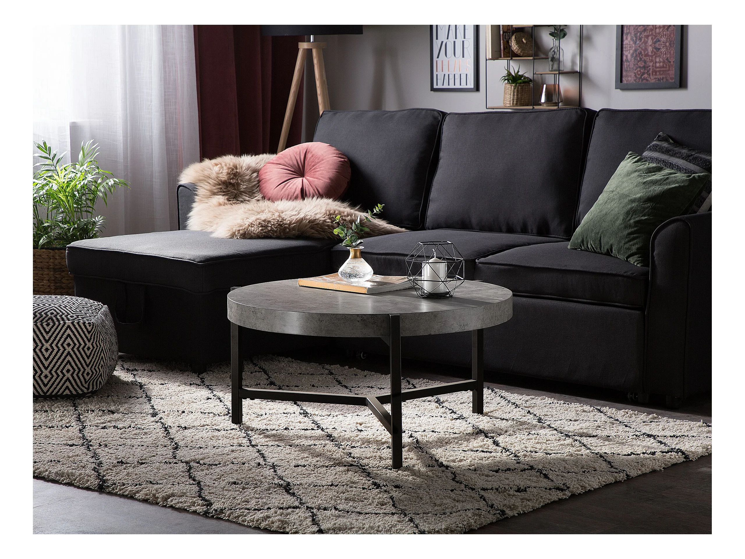 Multifunktionaler Couchtisch Beton-Optik MDF Metall grau Bonita