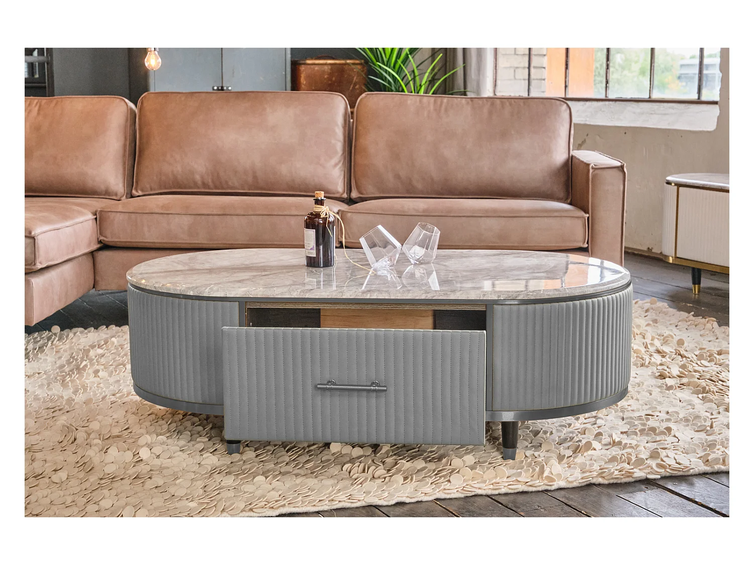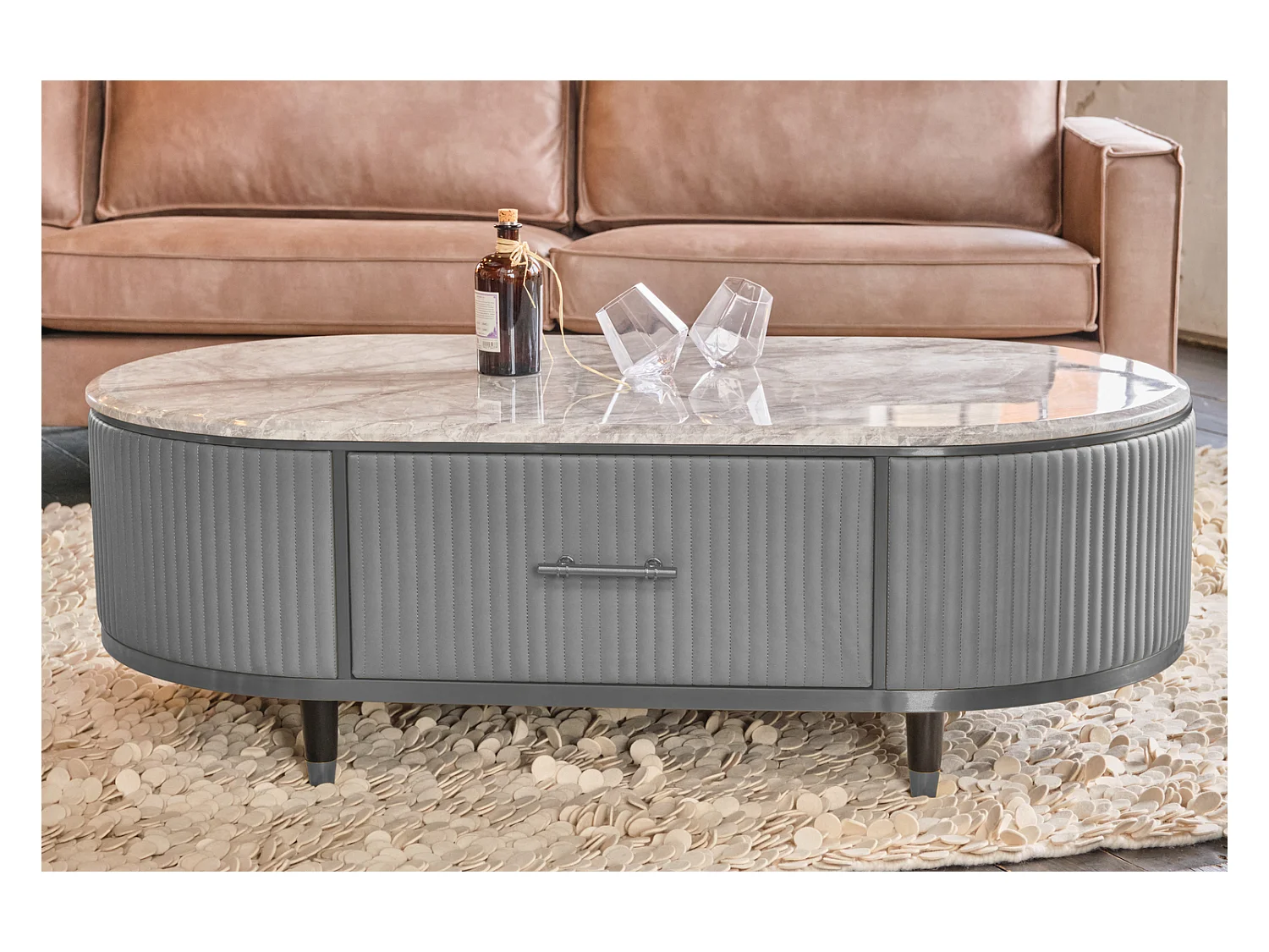 Couchtisch - Grau Kunstleder - 70 x 130 cm - MARIA
