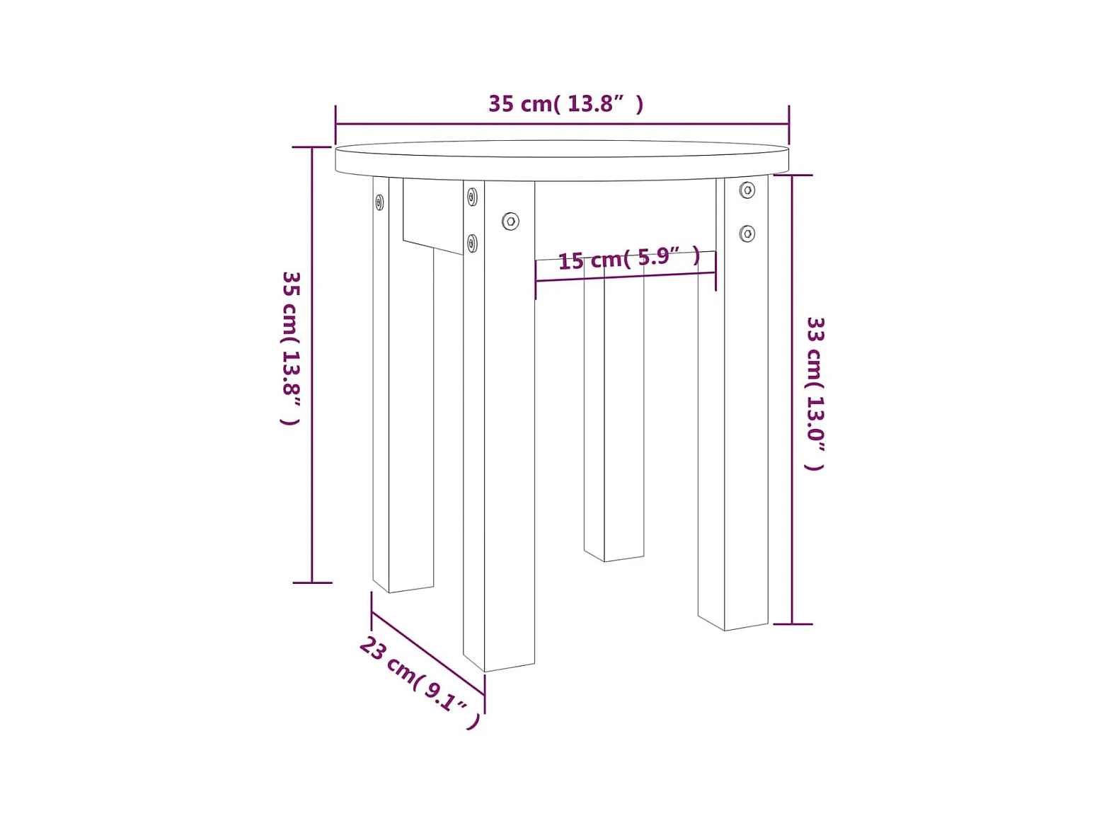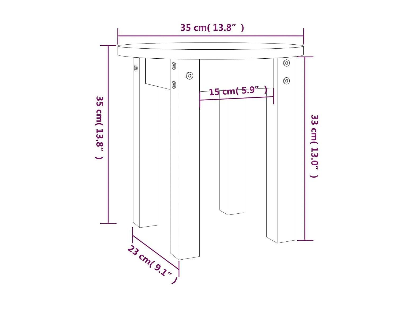 Couchtisch Grau Ø 35x35 cm Massivholz Kiefer