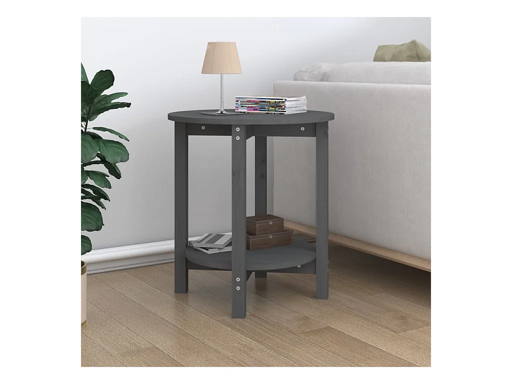 Couchtisch Grau Ø 55x60 cm Massivholz Kiefer