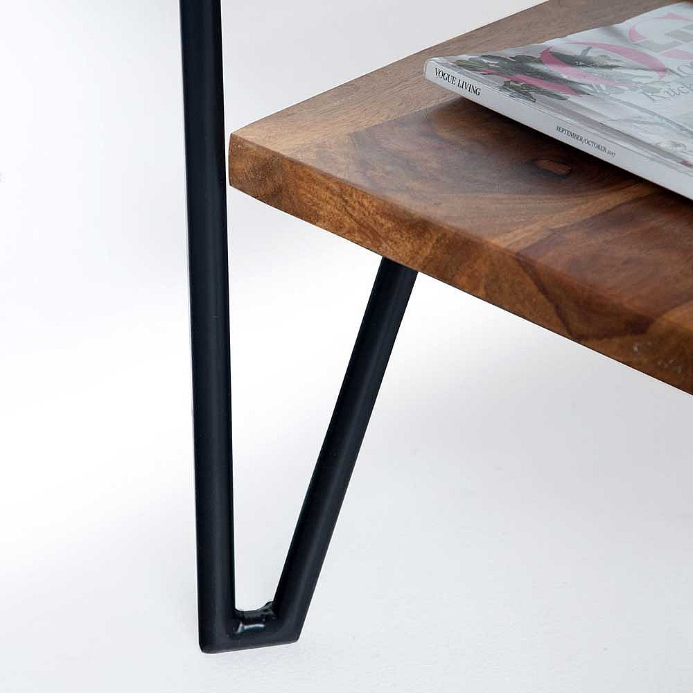 Couchtisch Holztisch aus Sheesham Massivholz und Metall