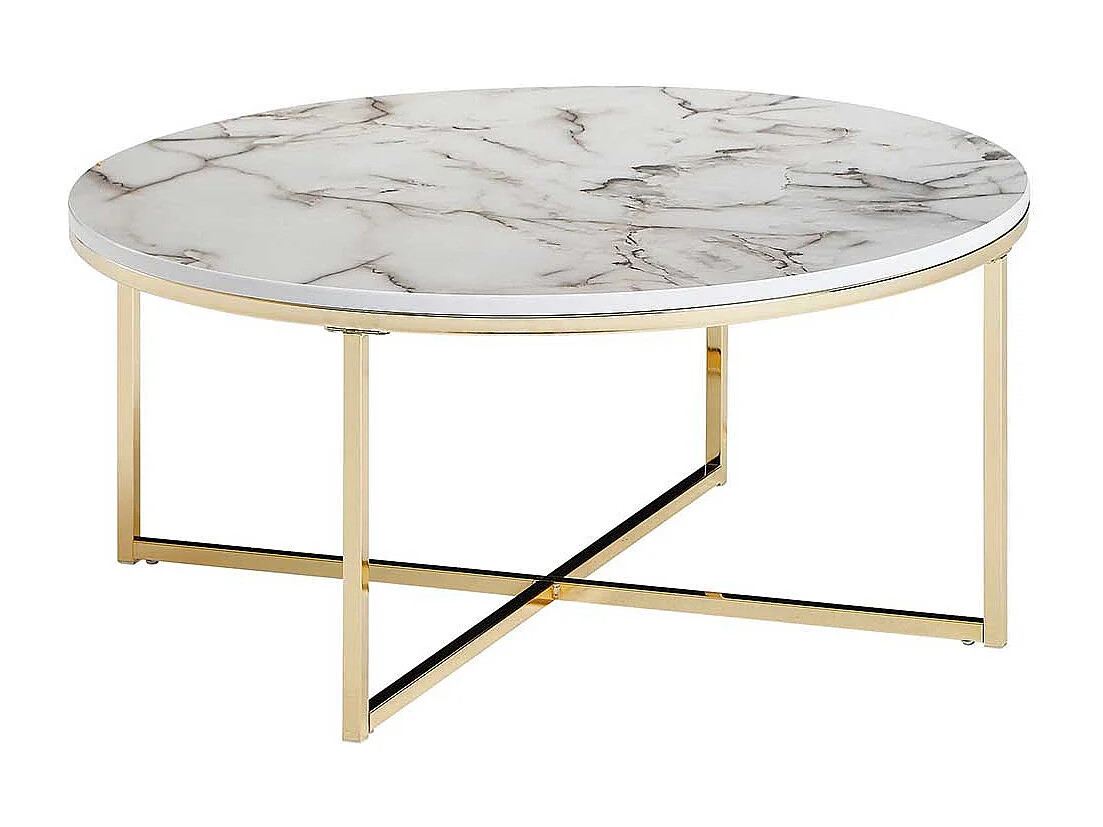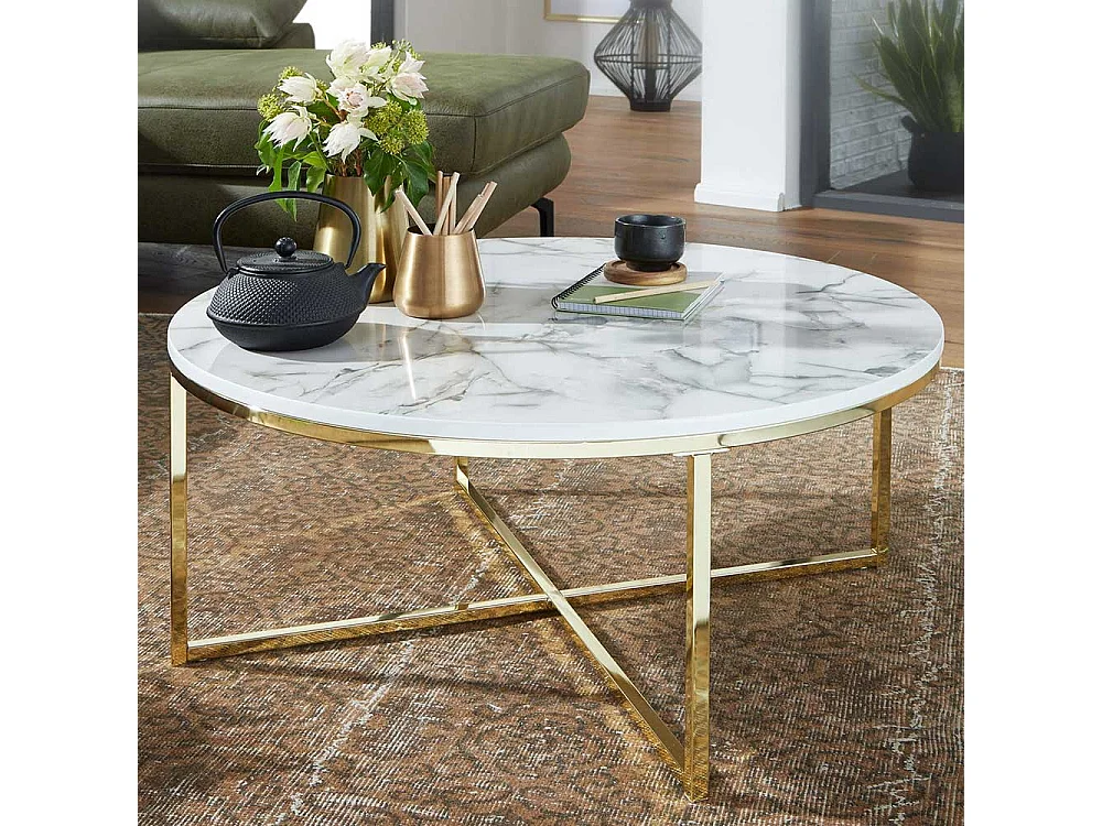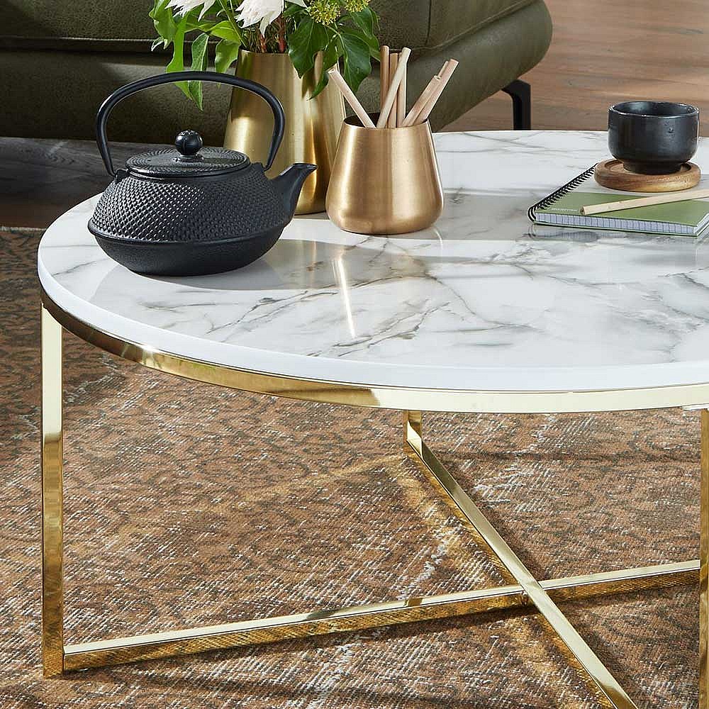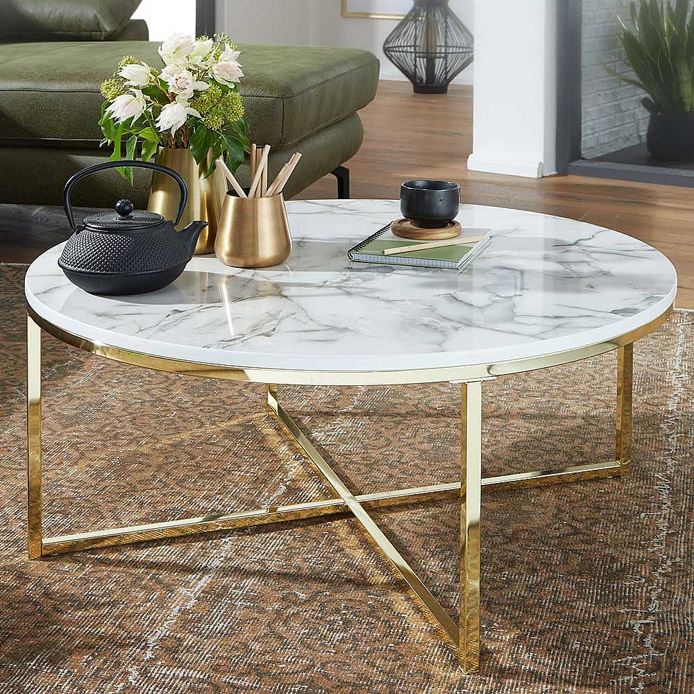 Couchtisch in Weiß Marmor Optik und Goldfarben rund