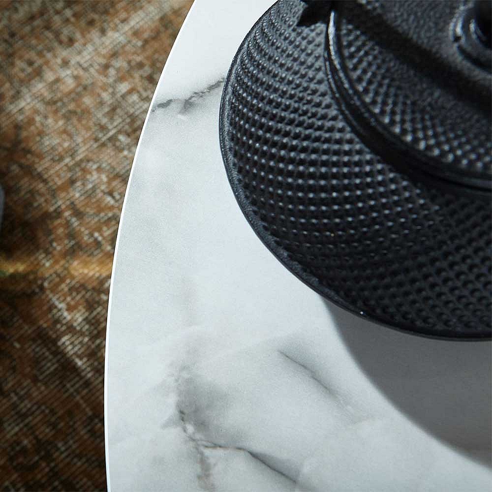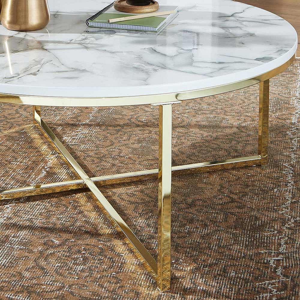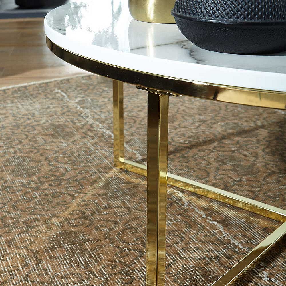 Couchtisch in Weiß Marmor Optik und Goldfarben rund