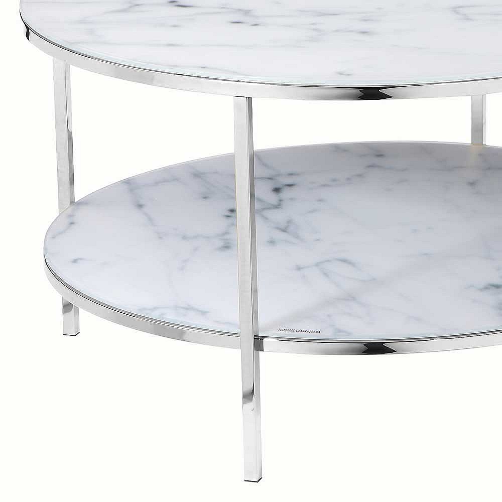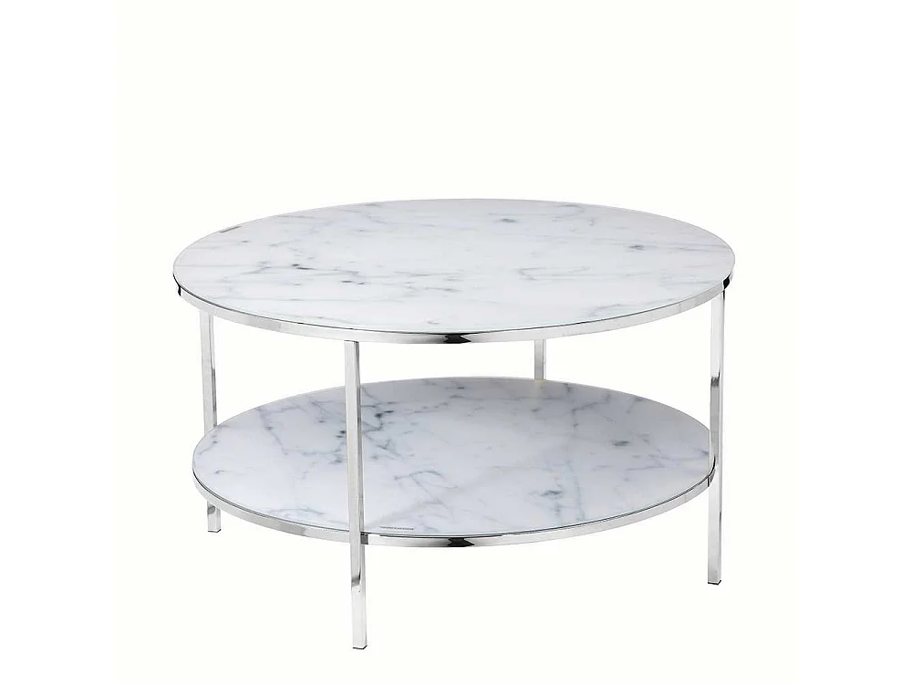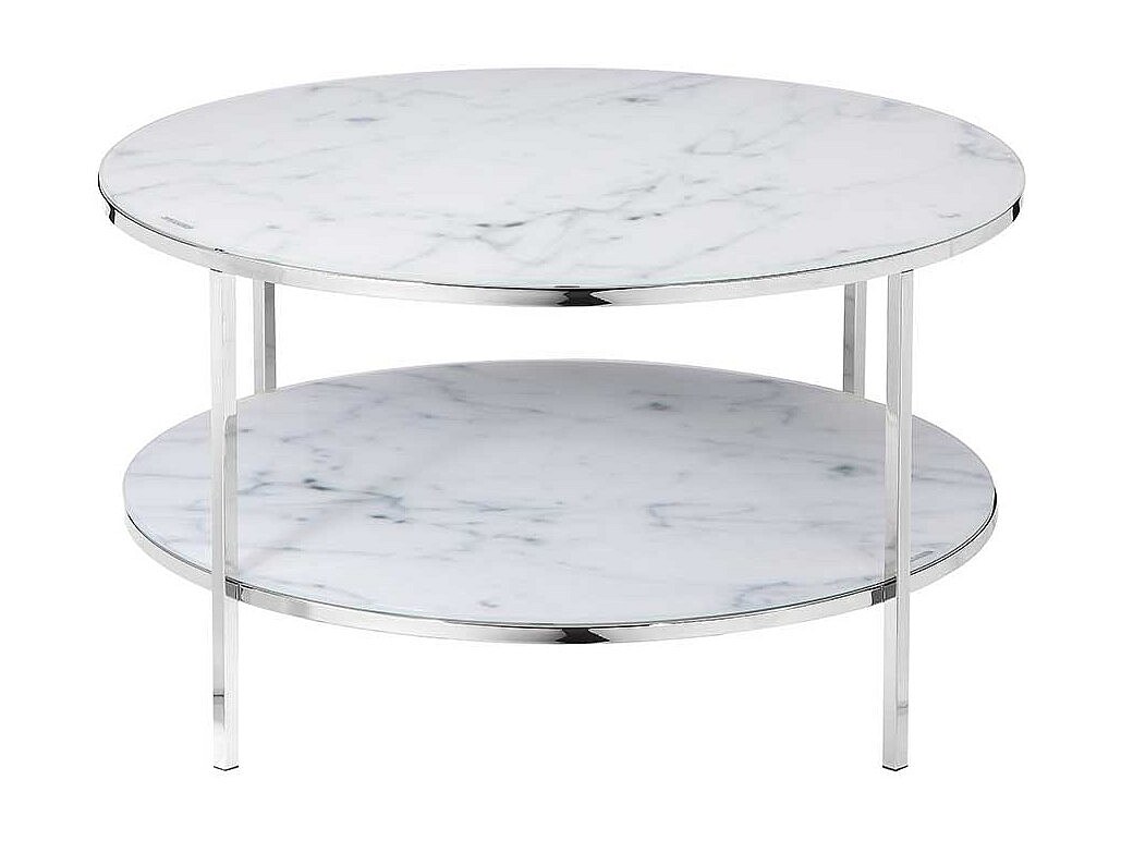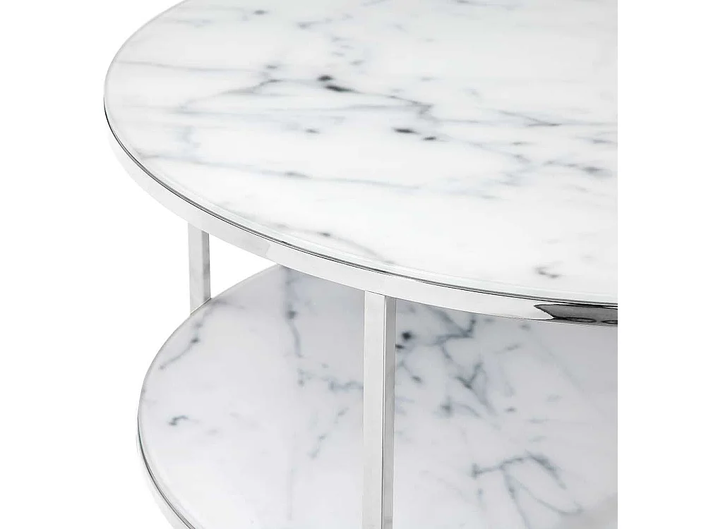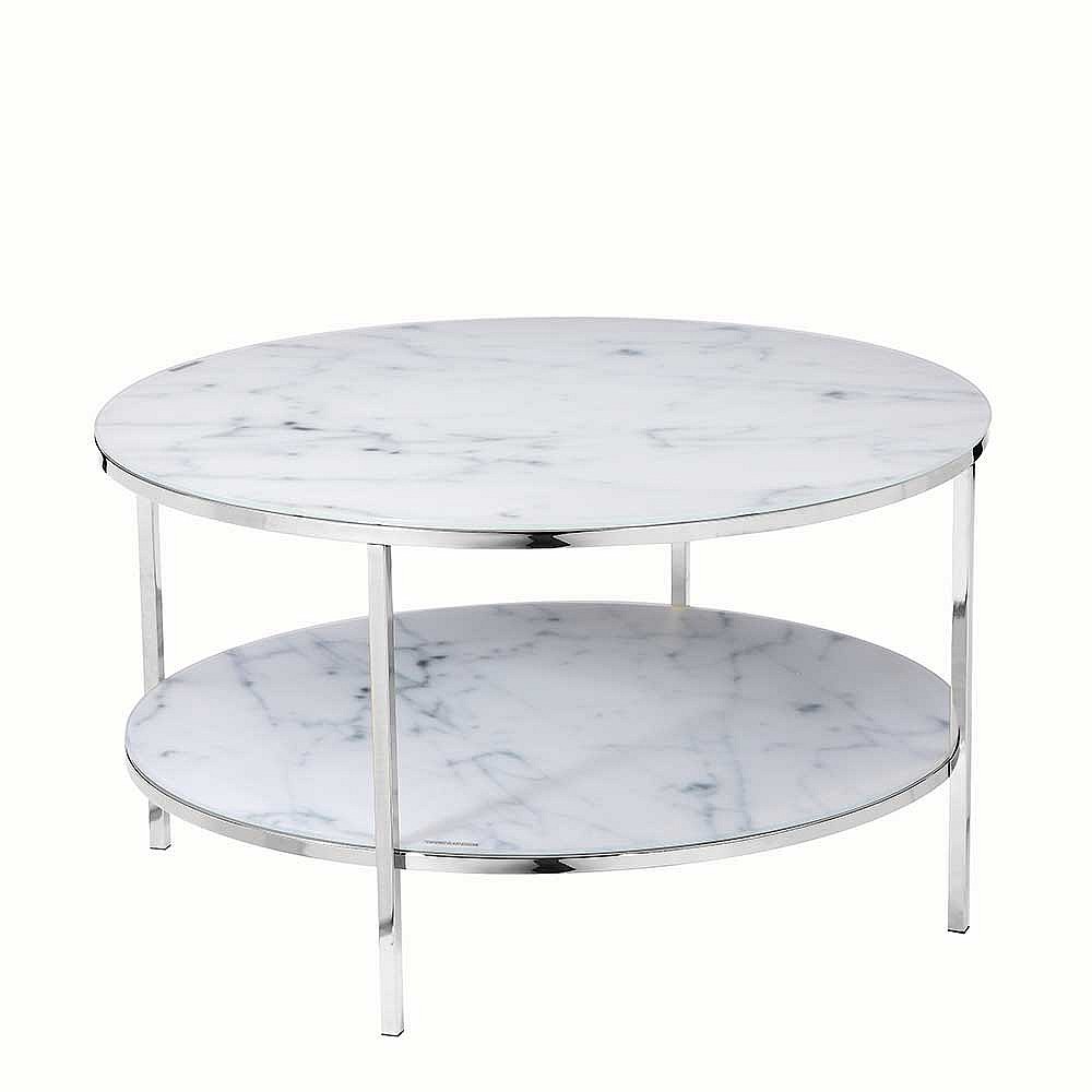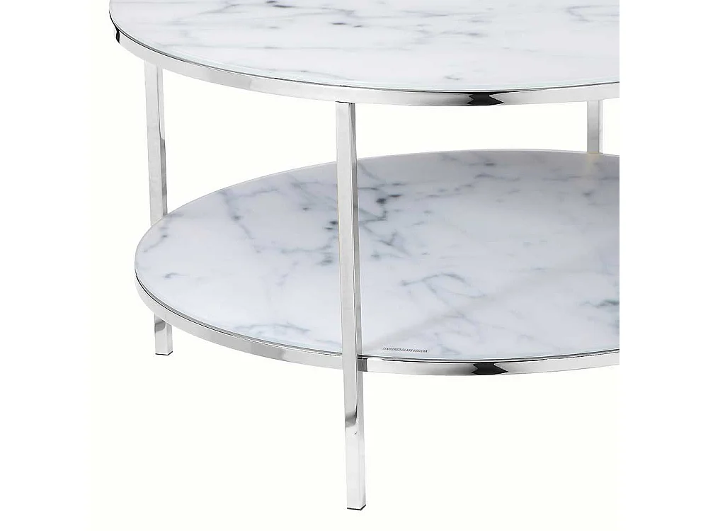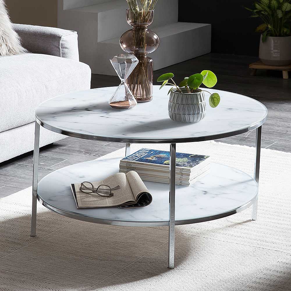 Couchtisch in Weiß Marmoroptik runde Glasplatten