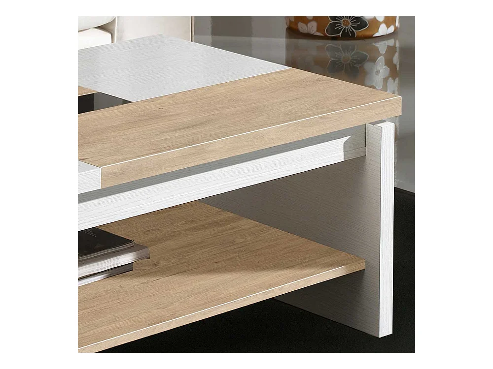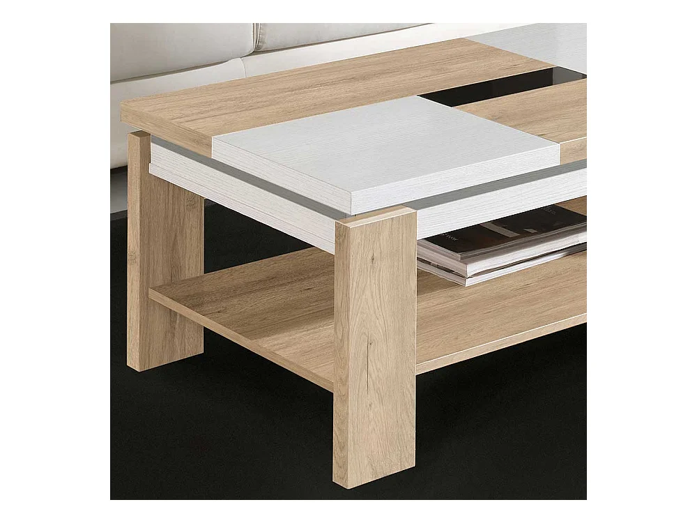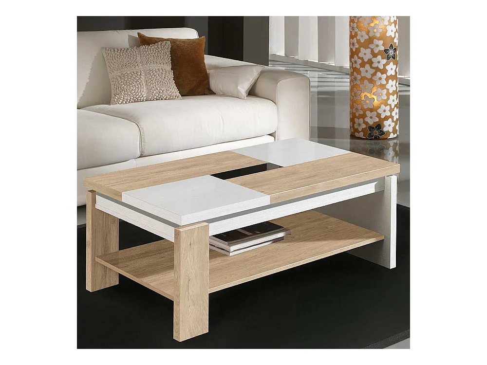Couchtisch in Weiß und Eiche Bianco hochklappbarer Tischplatte