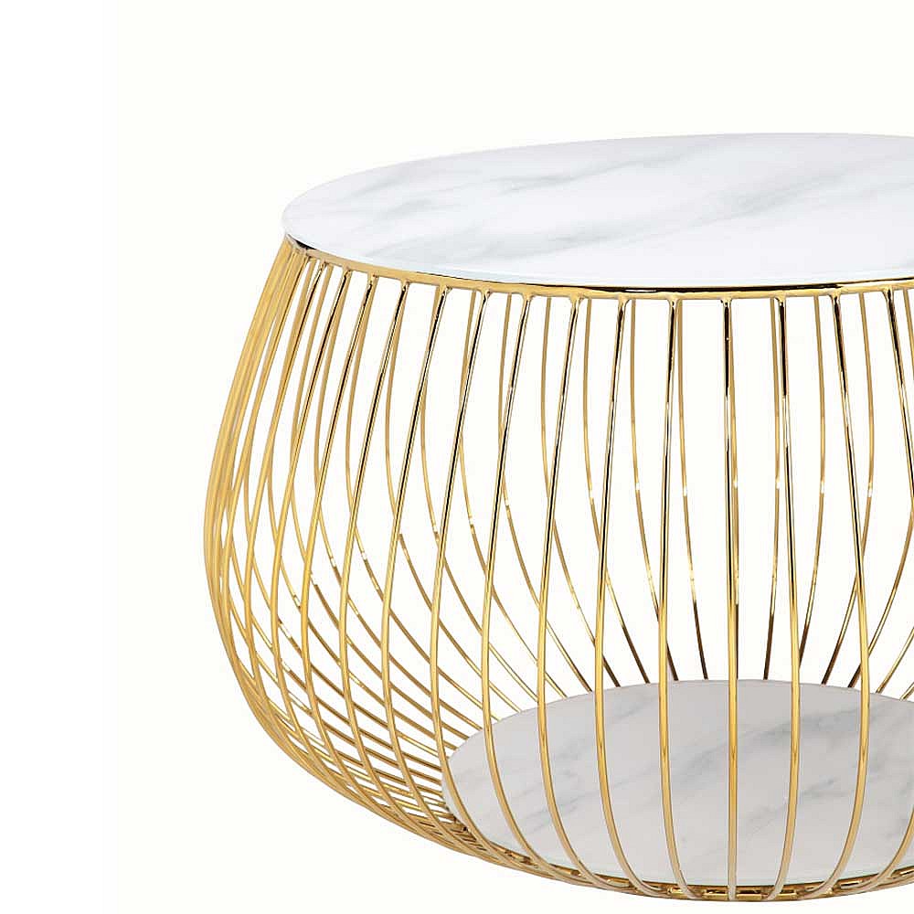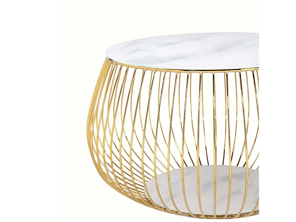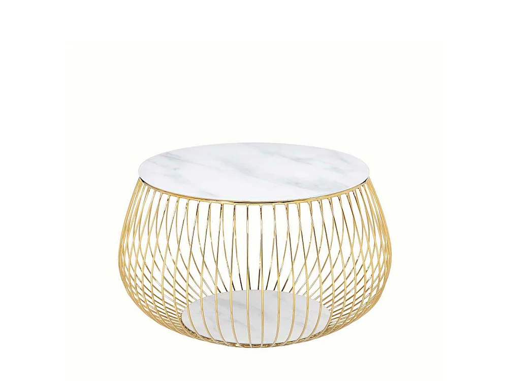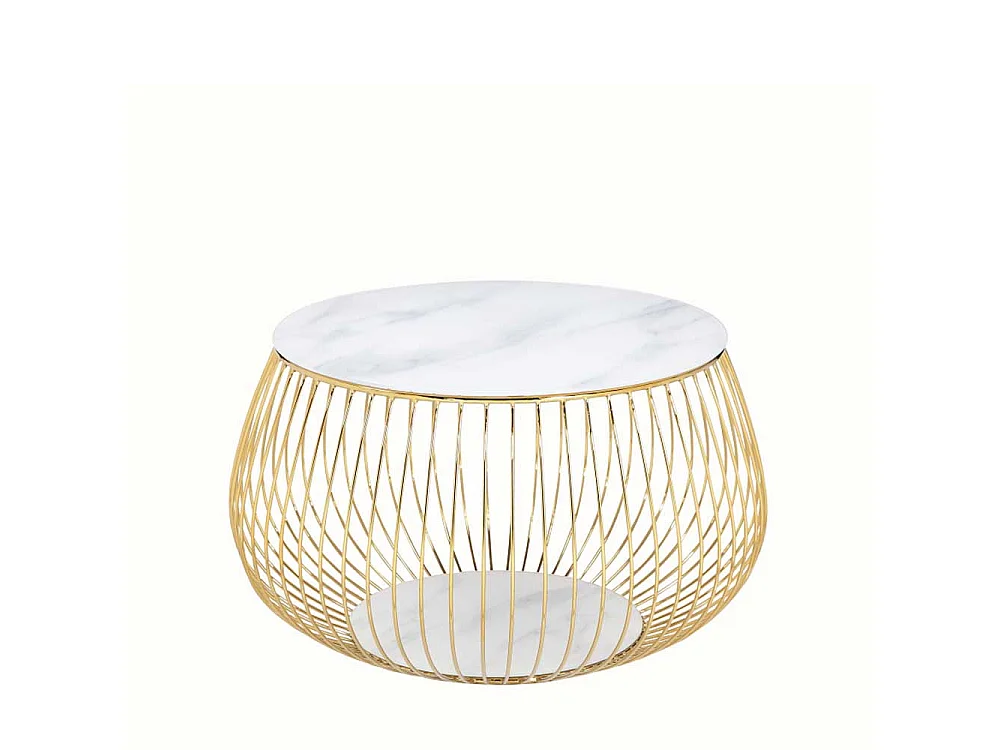 Couchtisch in Weiß und Goldfarben Drahtgestell