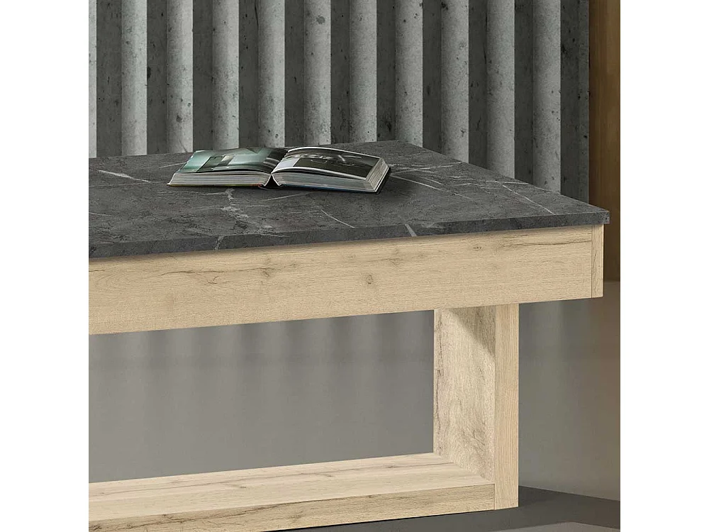 Couchtisch in Wildeichefarben und Dunkelgrau höhenverstellbar