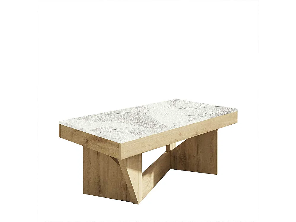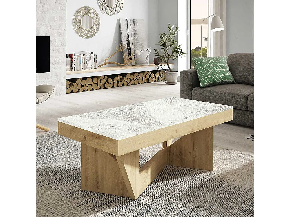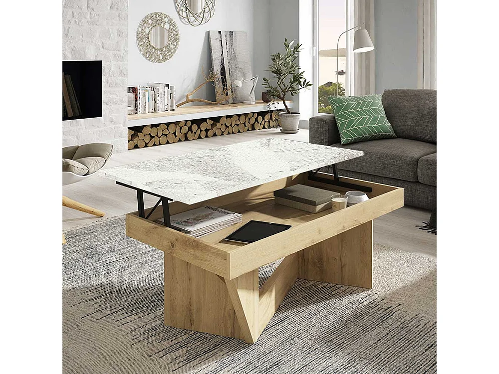 Couchtisch in Wildeichefarben und Hellgrau hochklappbarer Tischplatte