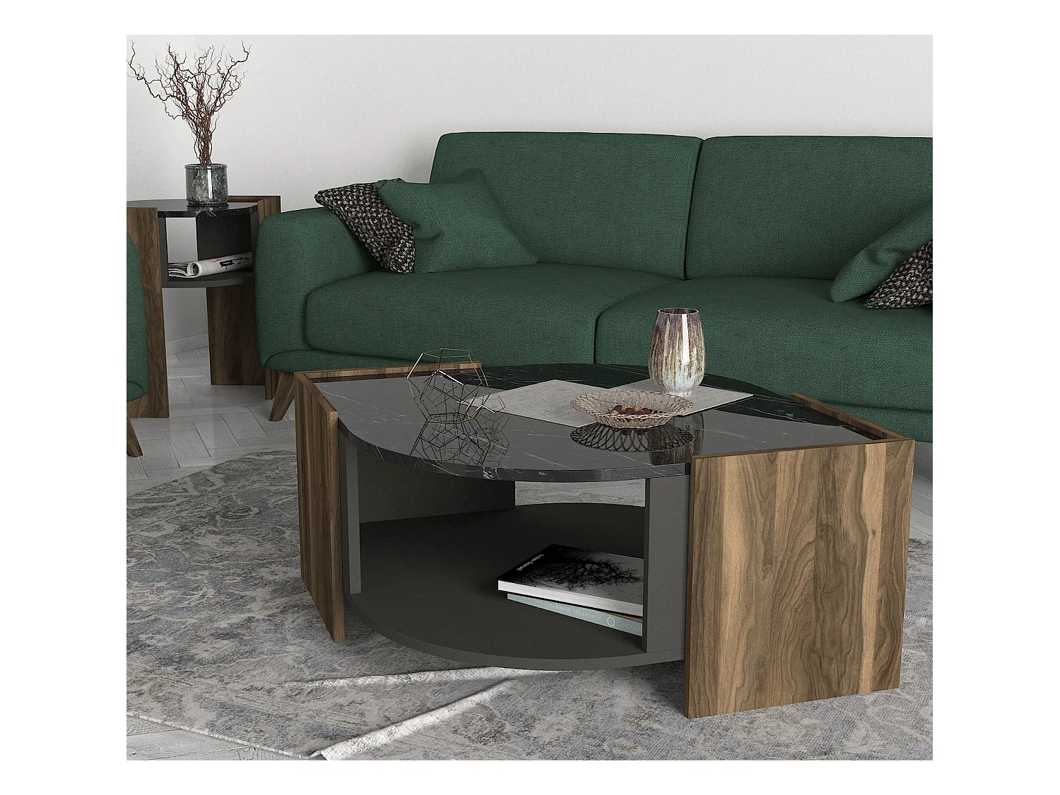Couchtisch Marbel Walnuss Marmor Optik