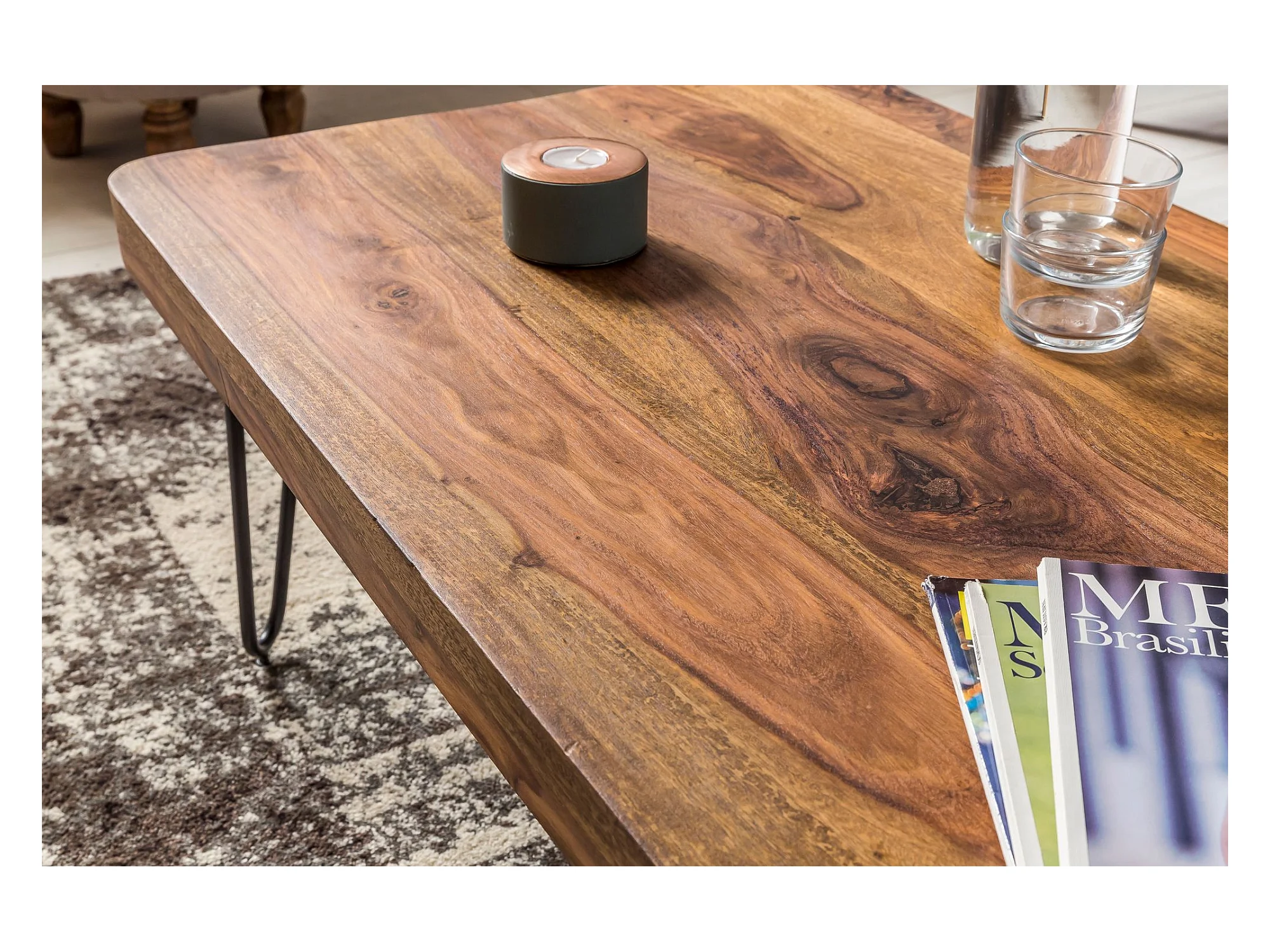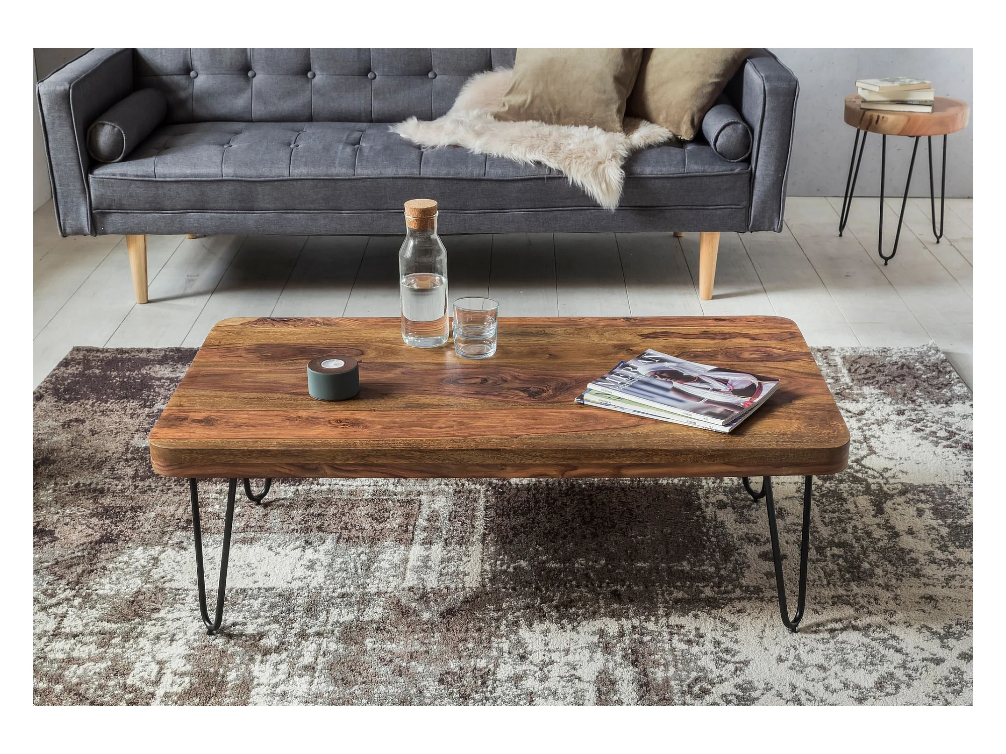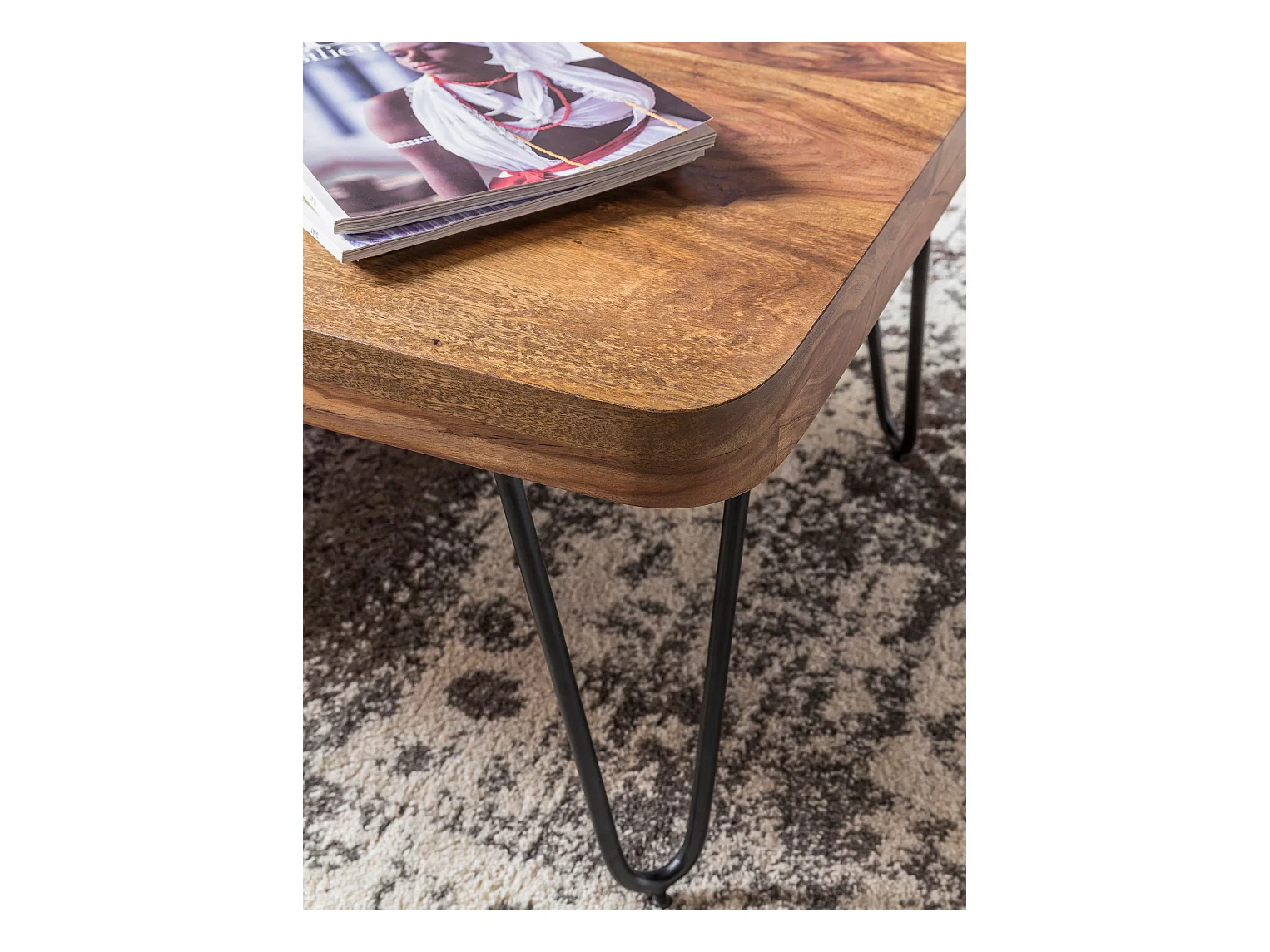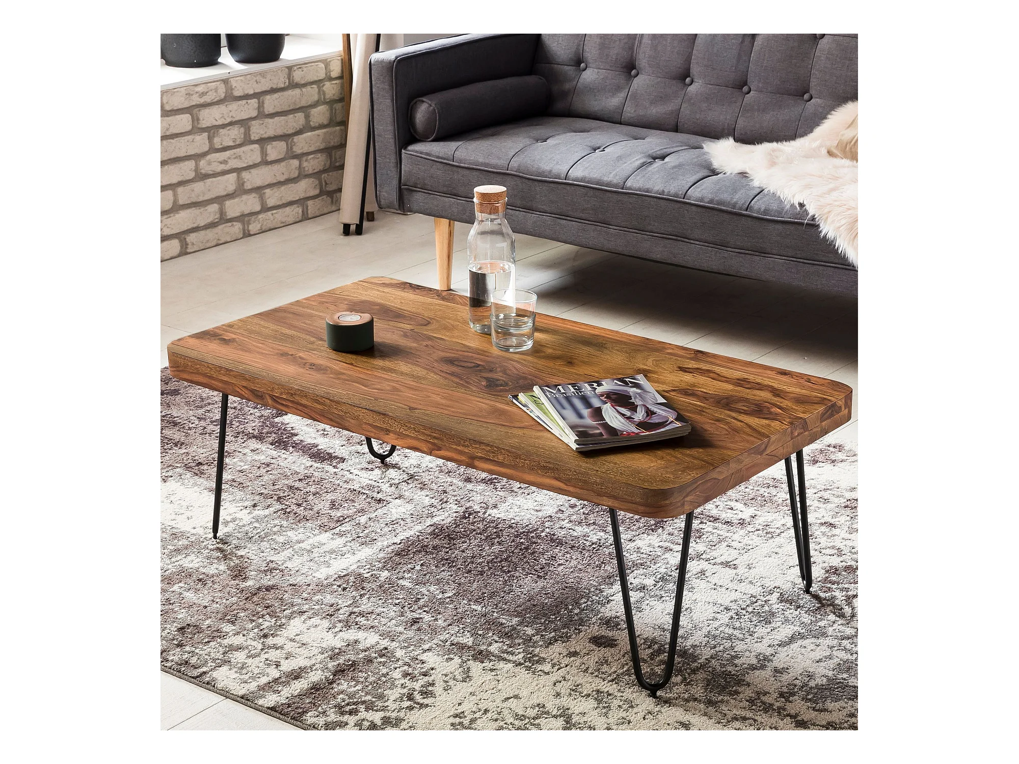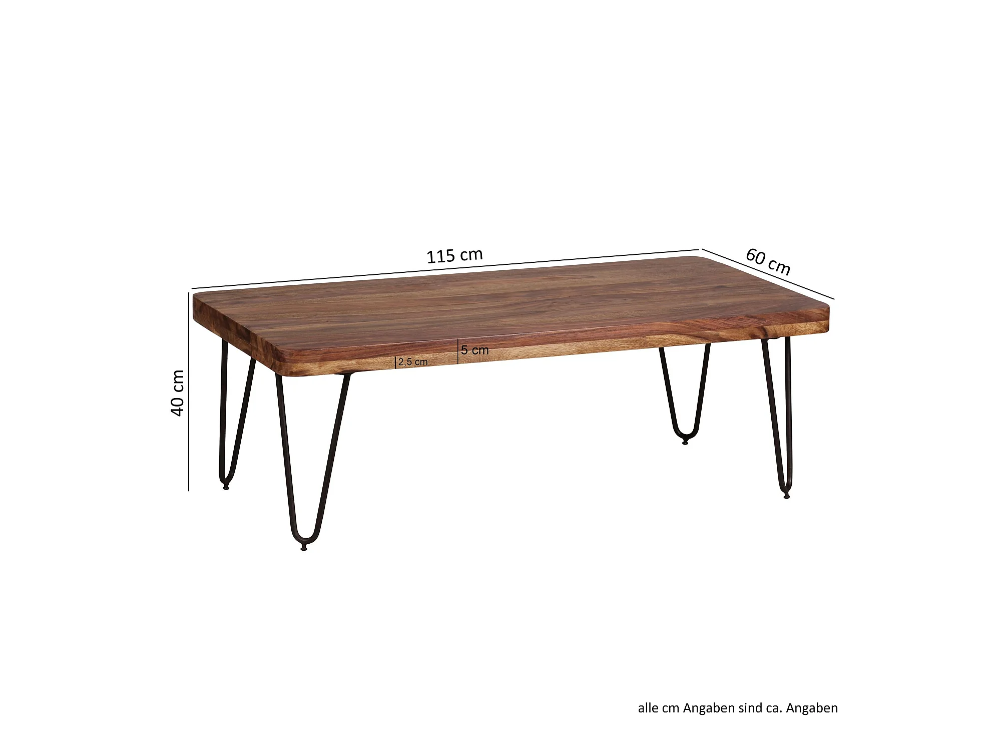 Couchtisch Massivholz 115 cm breit Wohnzimmertisch Metallbeine Landhaus