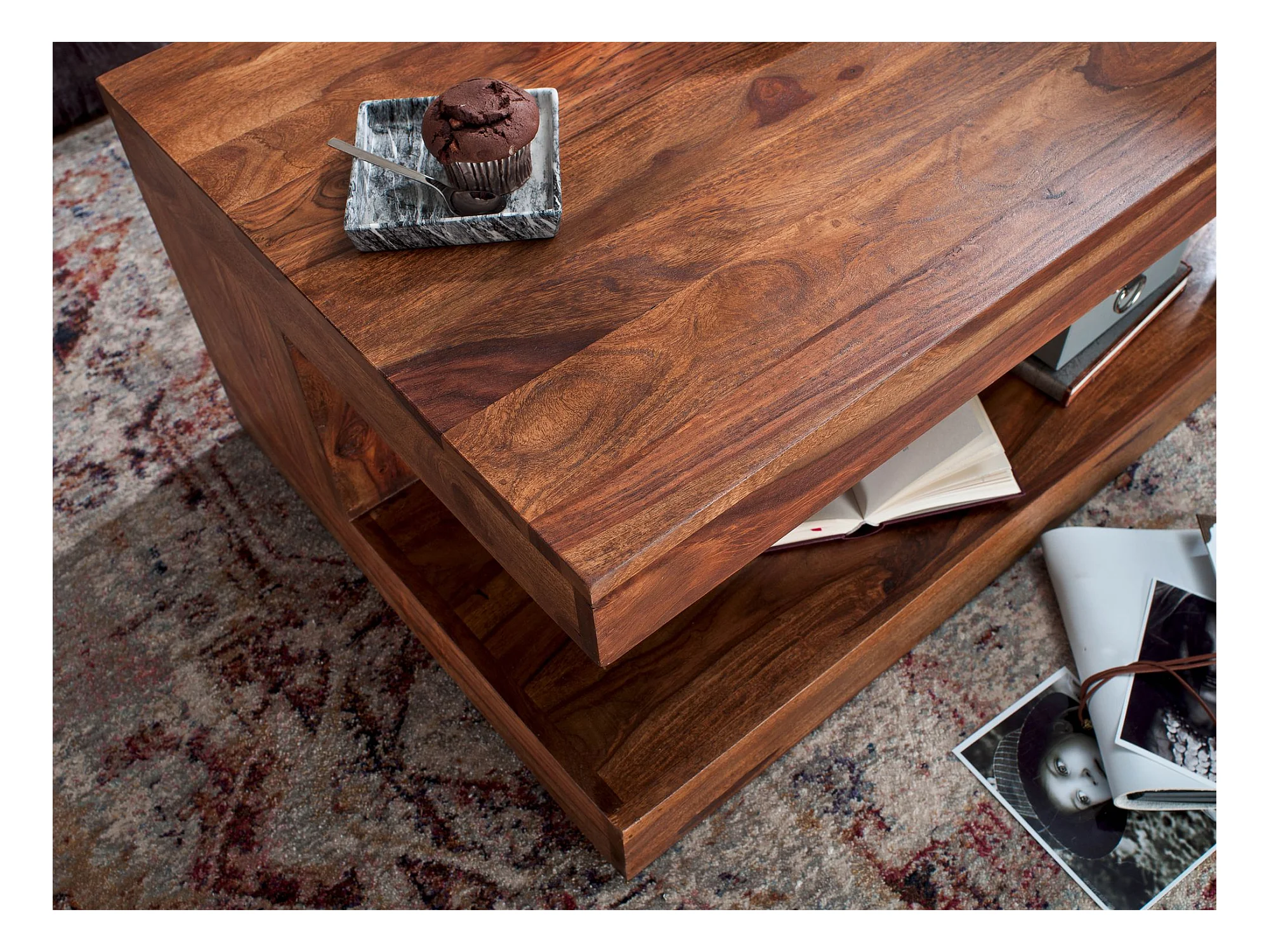 Couchtisch Massivholz 90 cm Wohnzimmertisch Braun Landhaus Beistelltisch