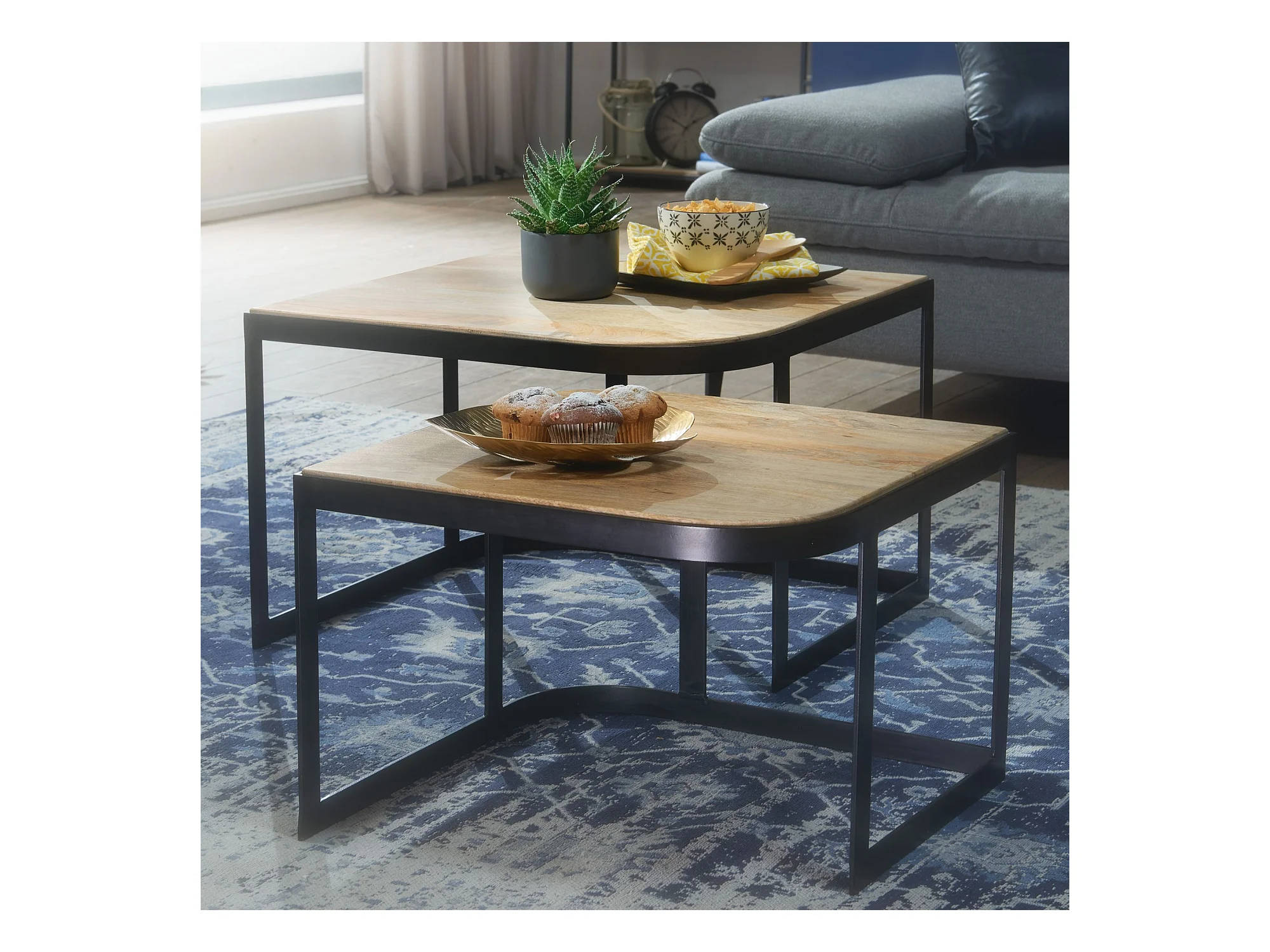 Couchtisch Massivholz Wohnzimmertisch 2er Set Beistelltisch Satztisch