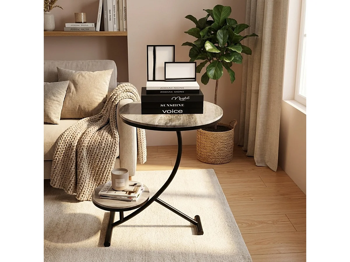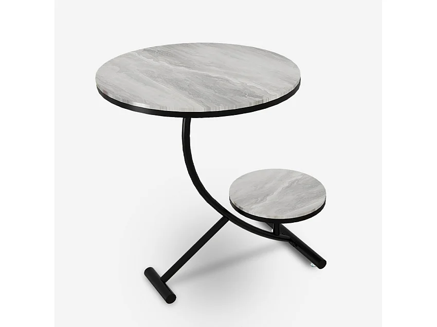 Couchtisch Metall und Marmor Design mit 2 Ablagen 50x50cm Marpes XL - Grau