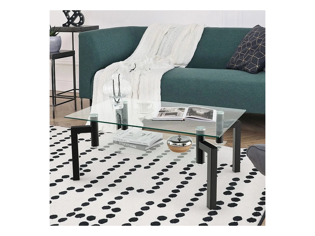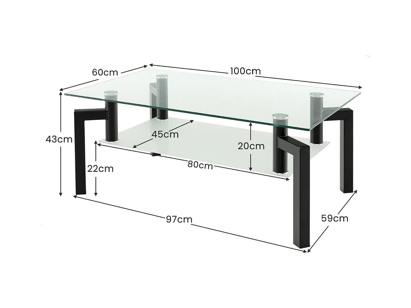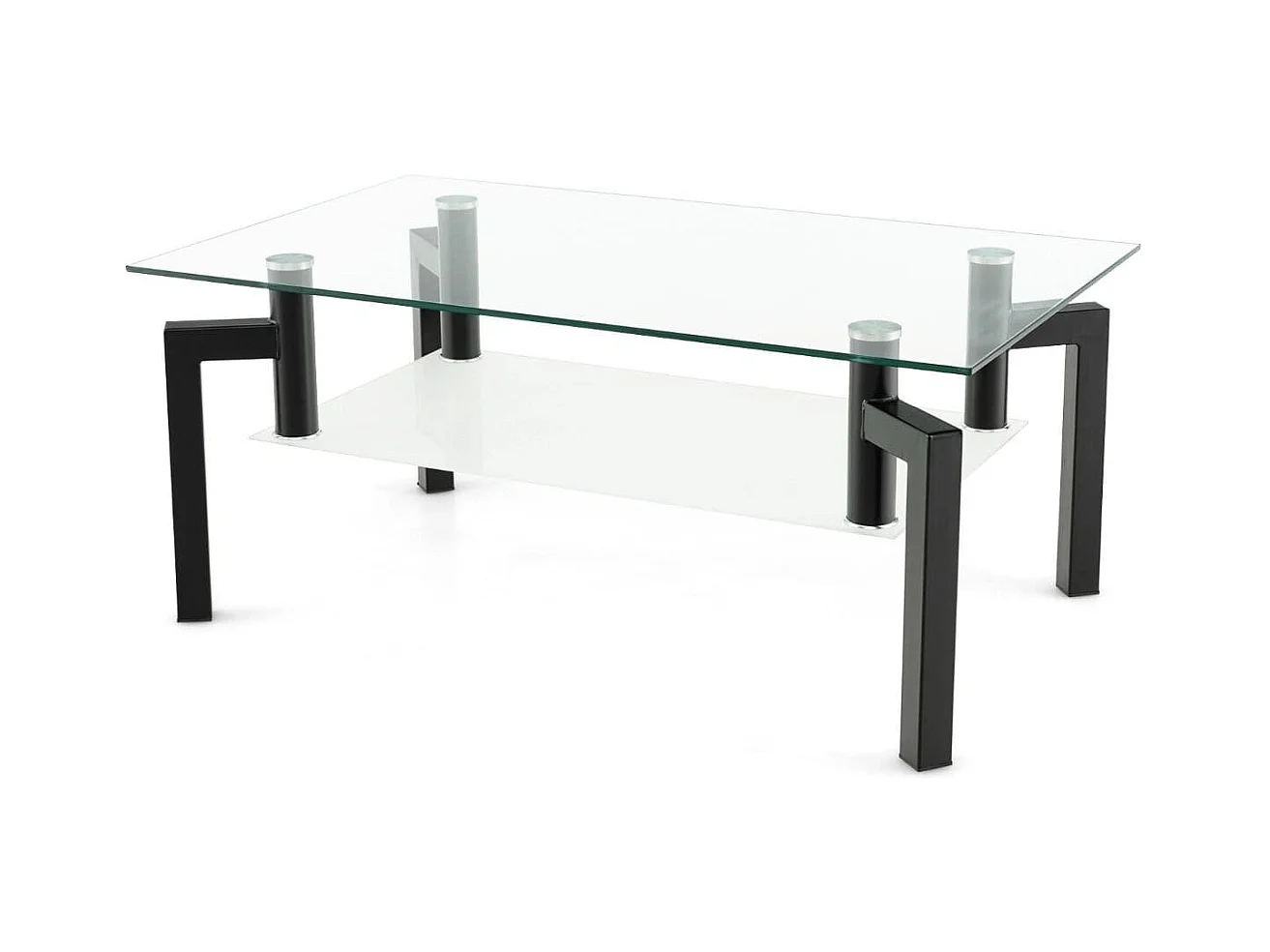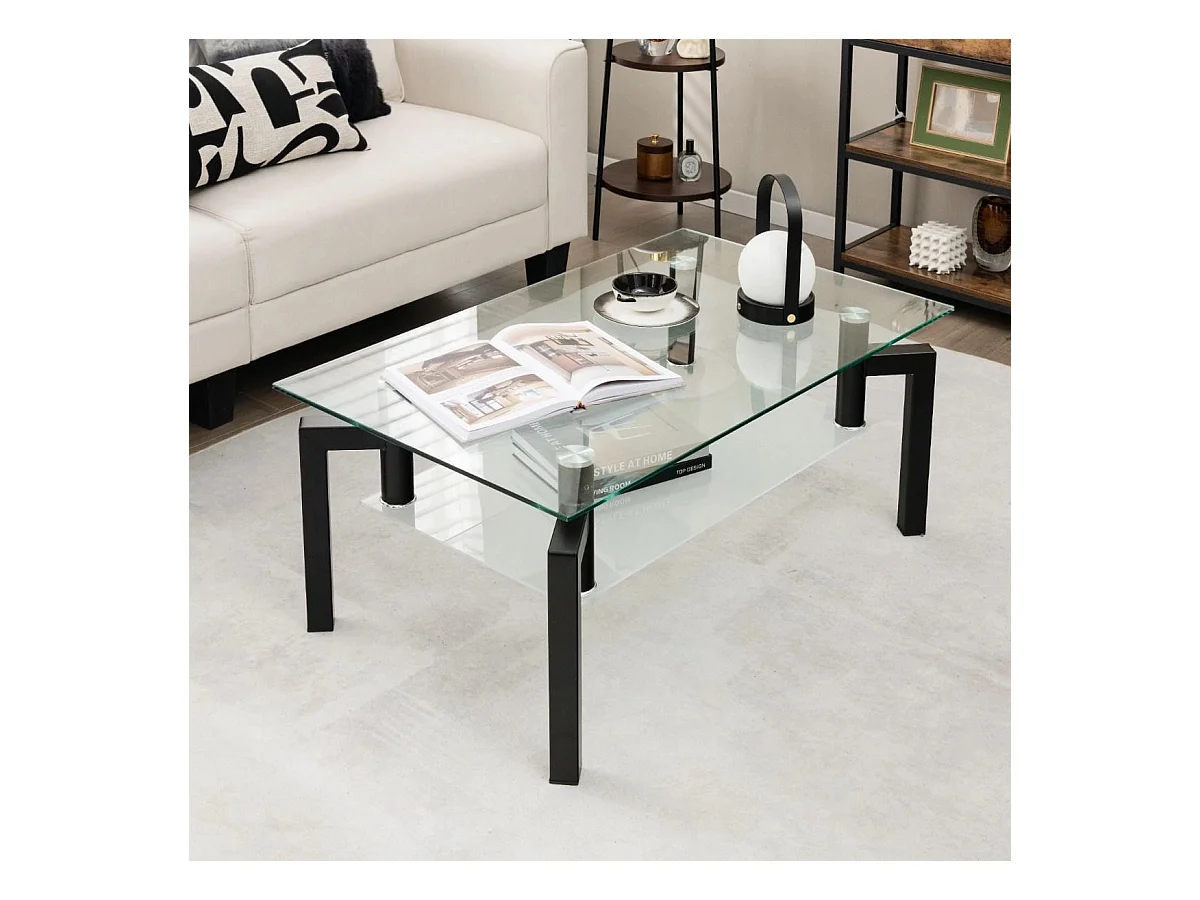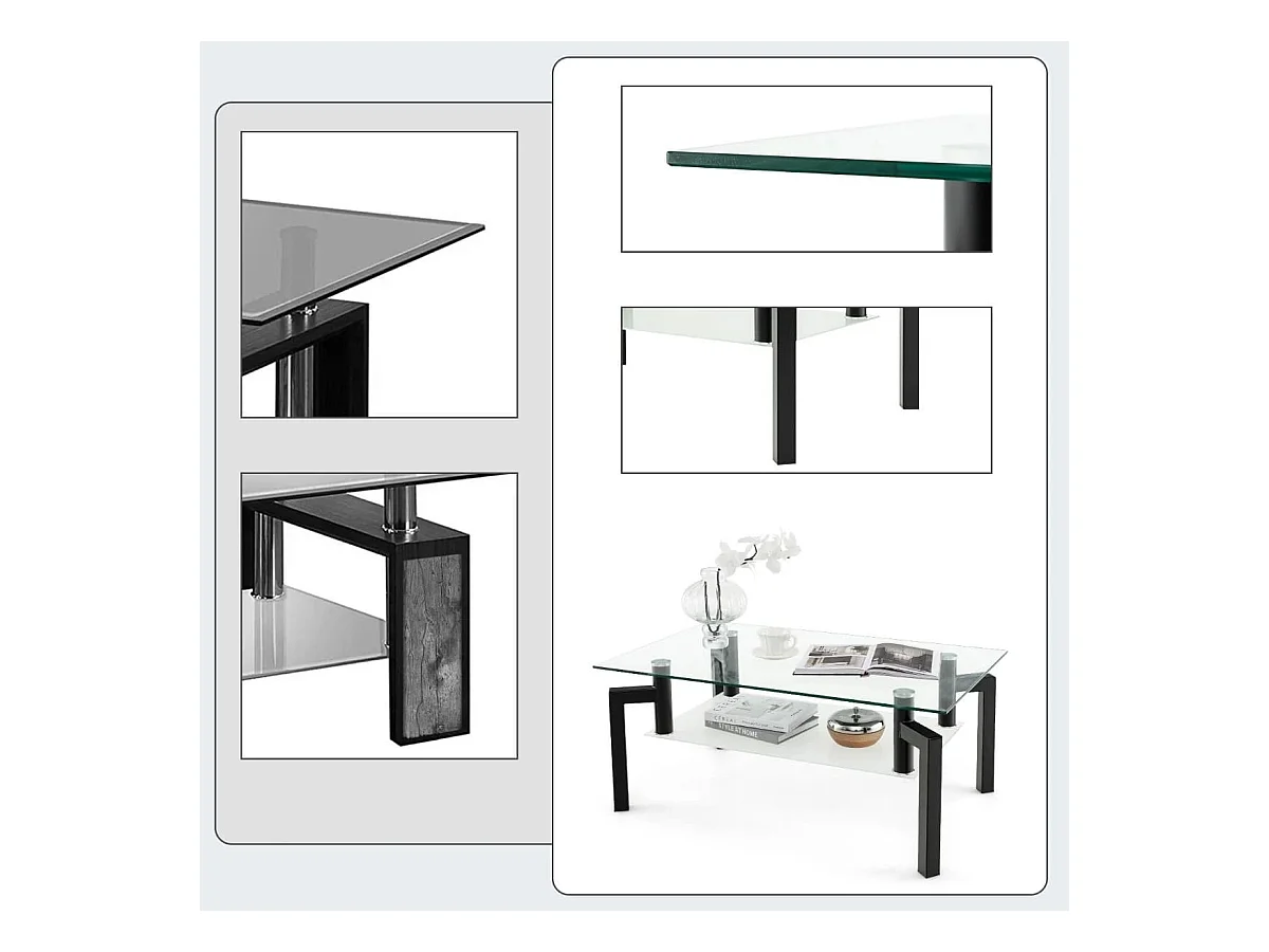 Rechteckiger Couchtisch aus Glas 2-Stufiger Moderner Kaffeetisch