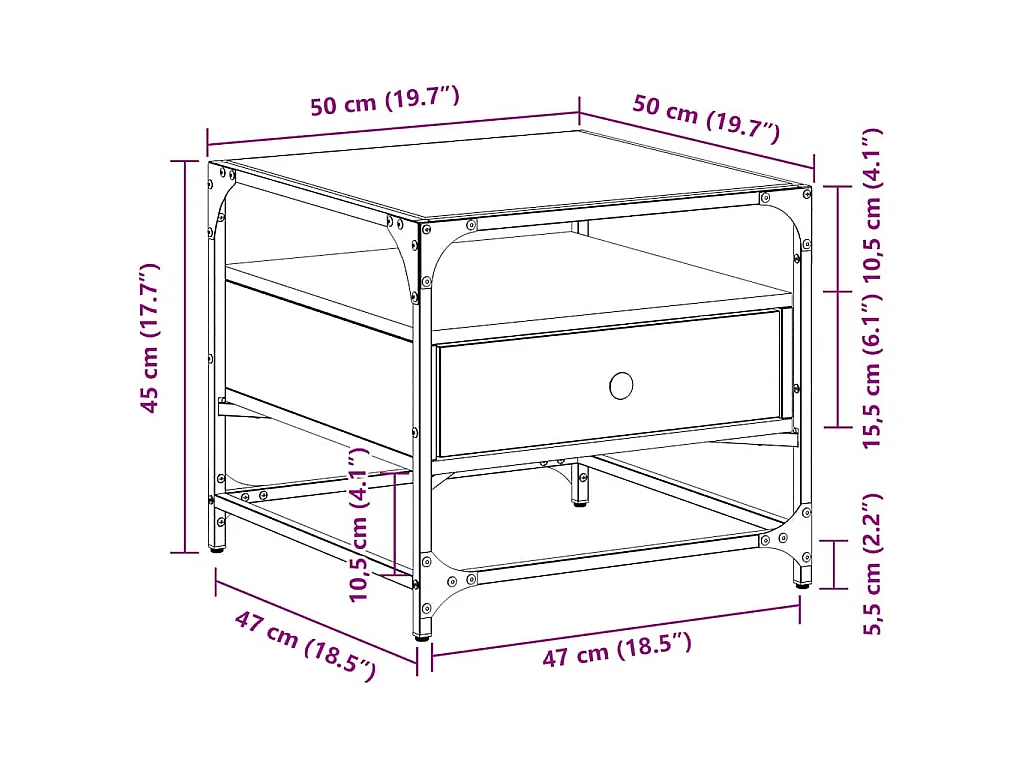 Couchtisch mit Glasplatte Schwarz 50x50x45 cm Stahl