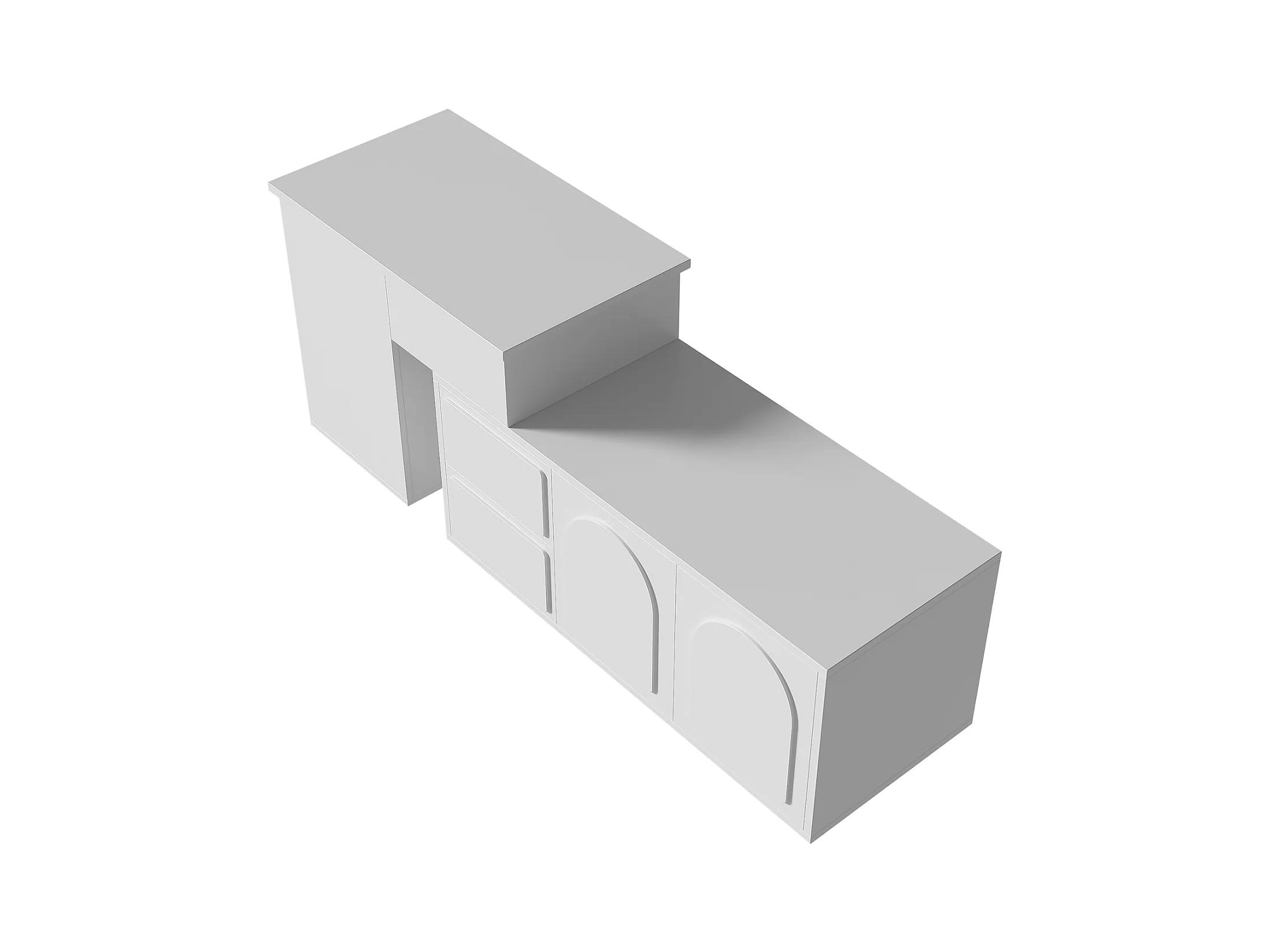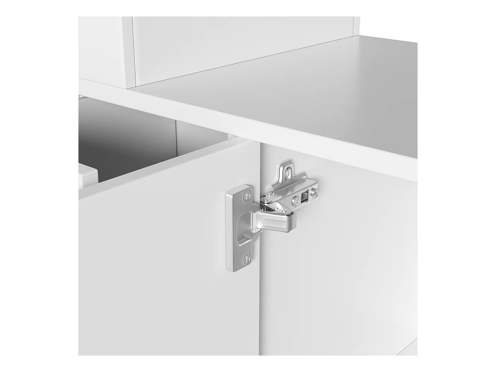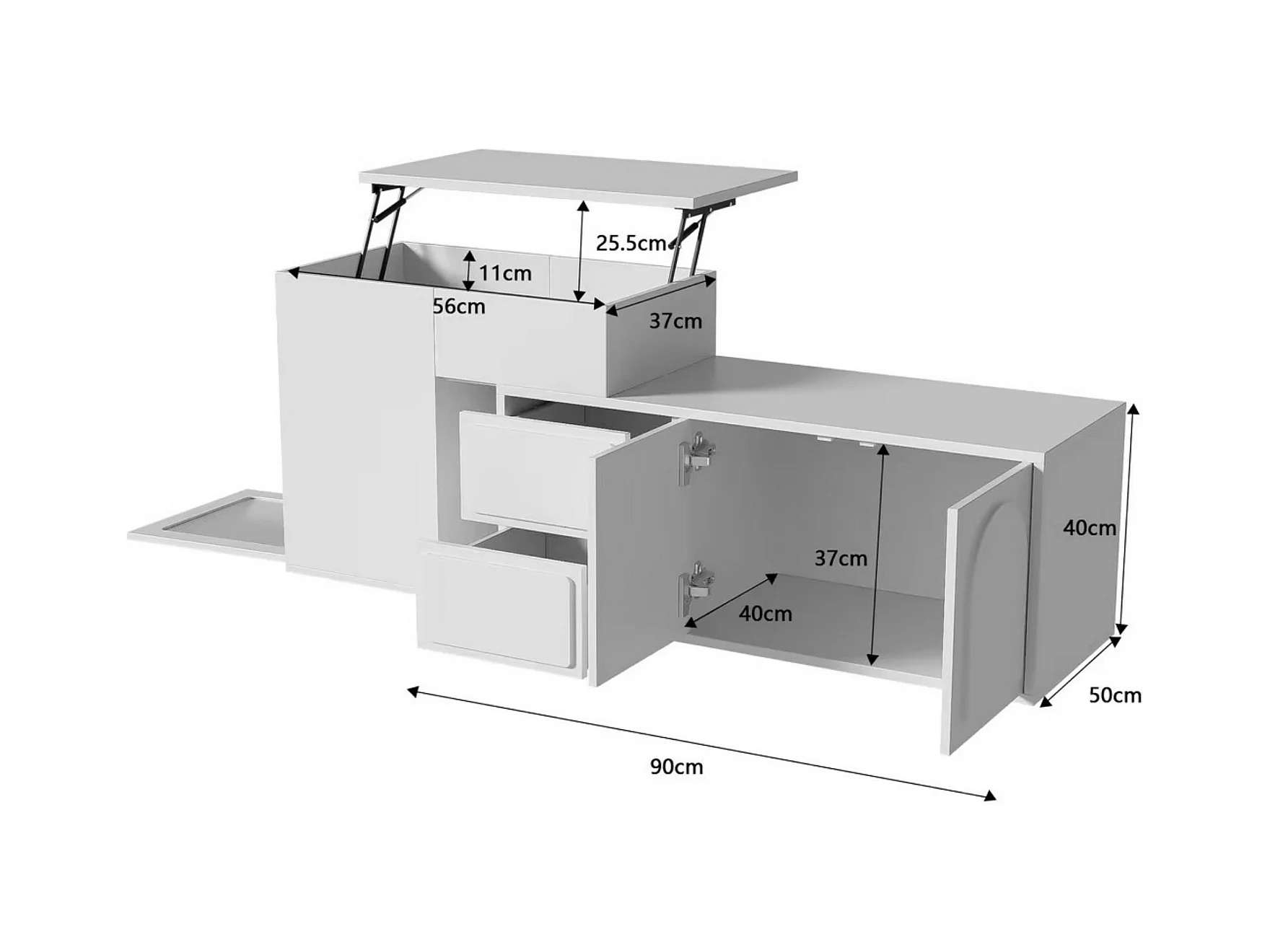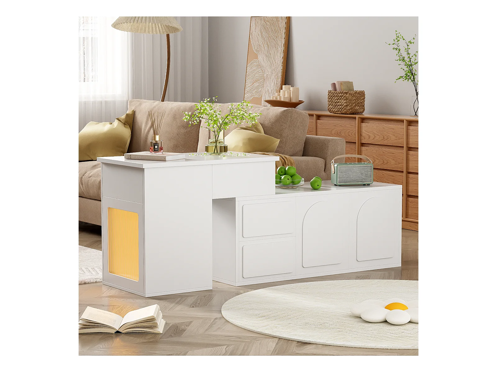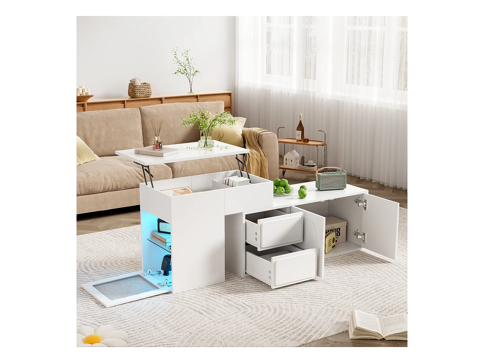 Couchtisch mit hingbarem Tablett, 2 Schubladen, Regal- und Glastüren, 16 LED -Farben, MDF und PB, Weiß
