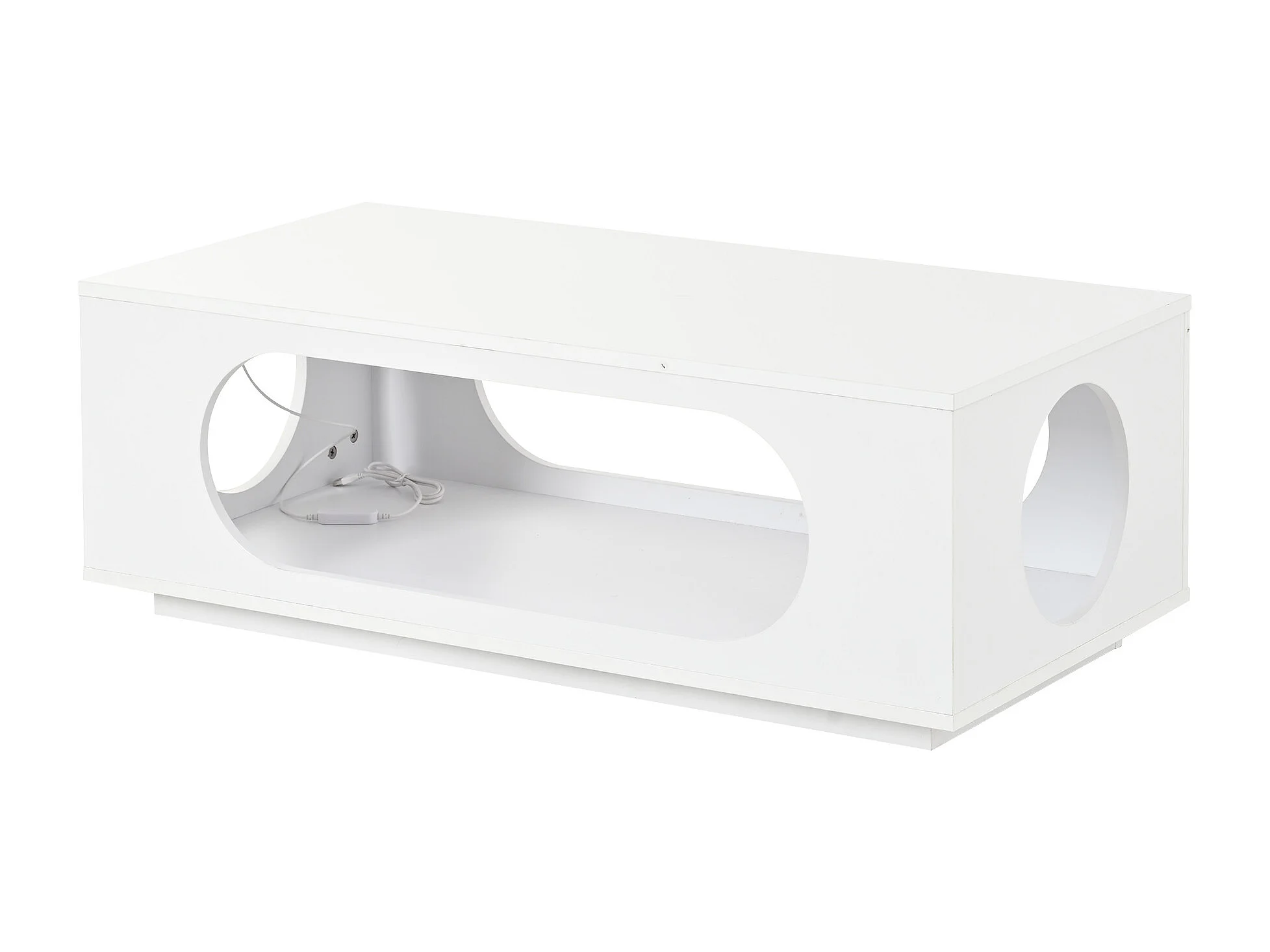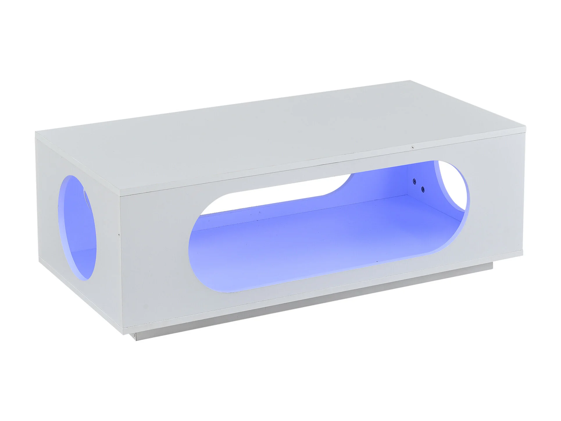 Couchtisch mit Hochglanzoberfläche – 100 x 50 x 35 cm – mit LED-Beleuchtung und Ablagefläche – MDF – weiß
