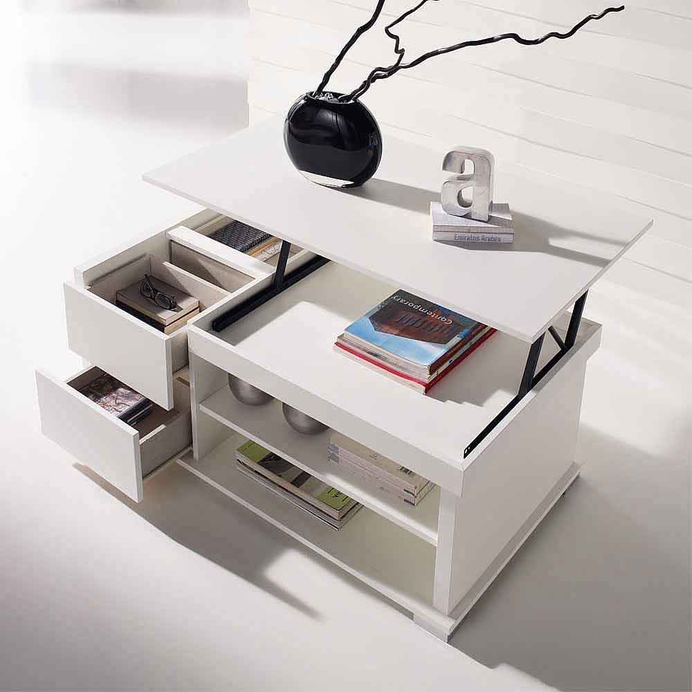 Couchtisch mit hochklappbarer Tischplatte Wei�