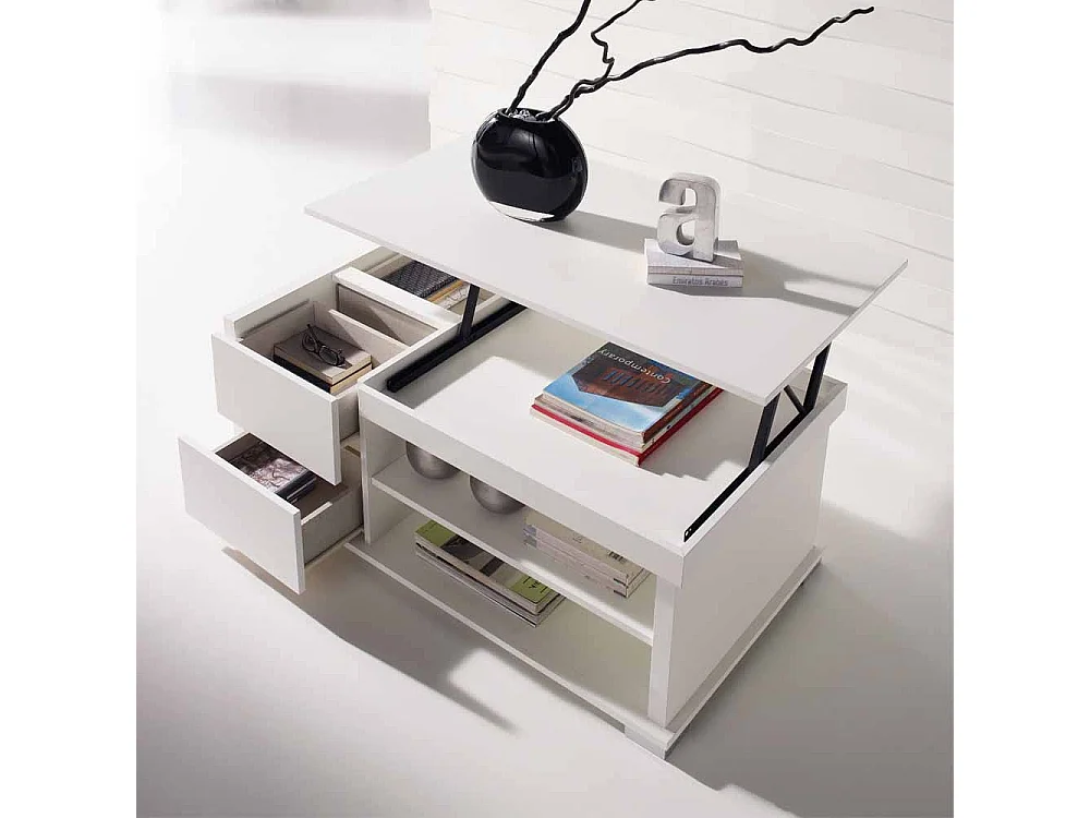 Couchtisch mit hochklappbarer Tischplatte Weiß