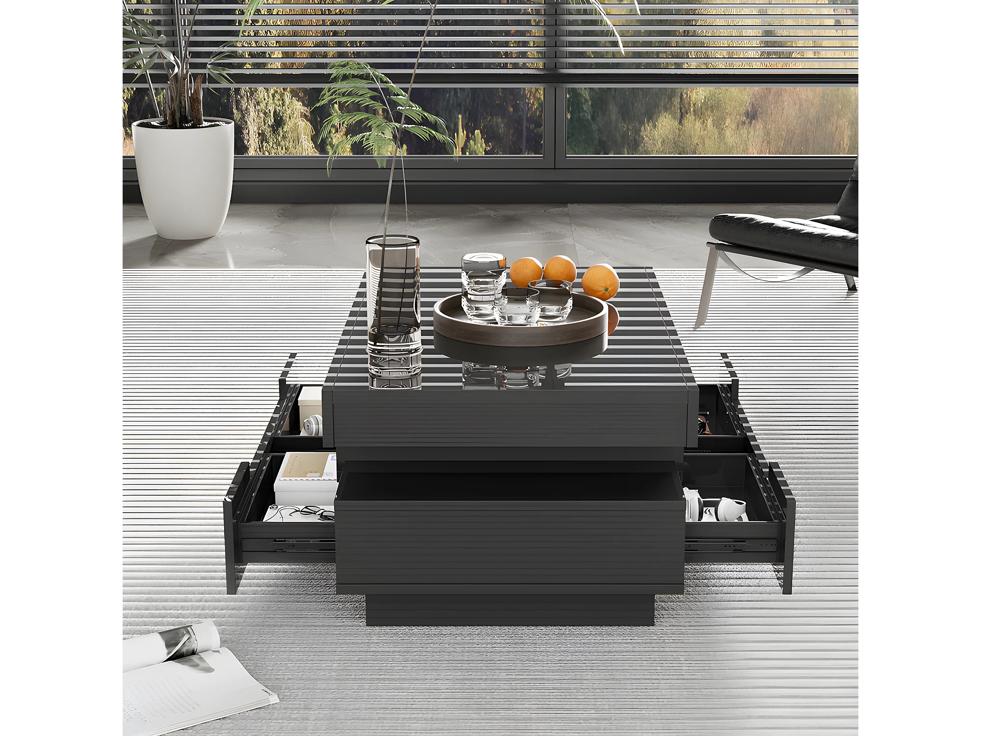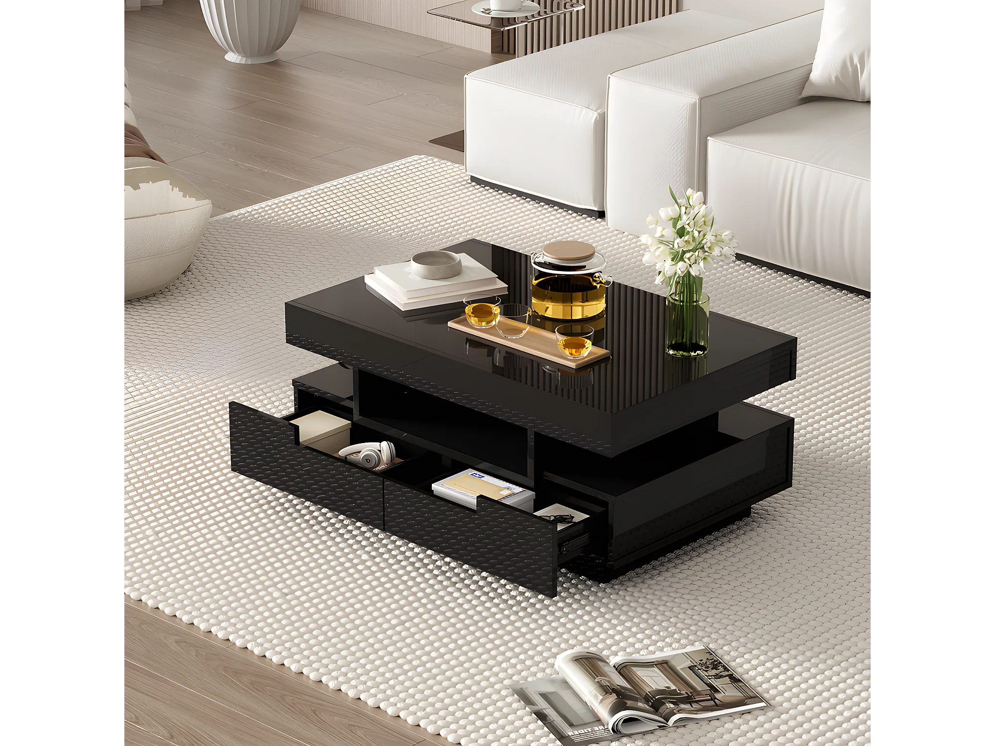 Couchtisch mit LED – glänzende Oberfläche – 4 Schubladen vorne und hinten – Schwarz