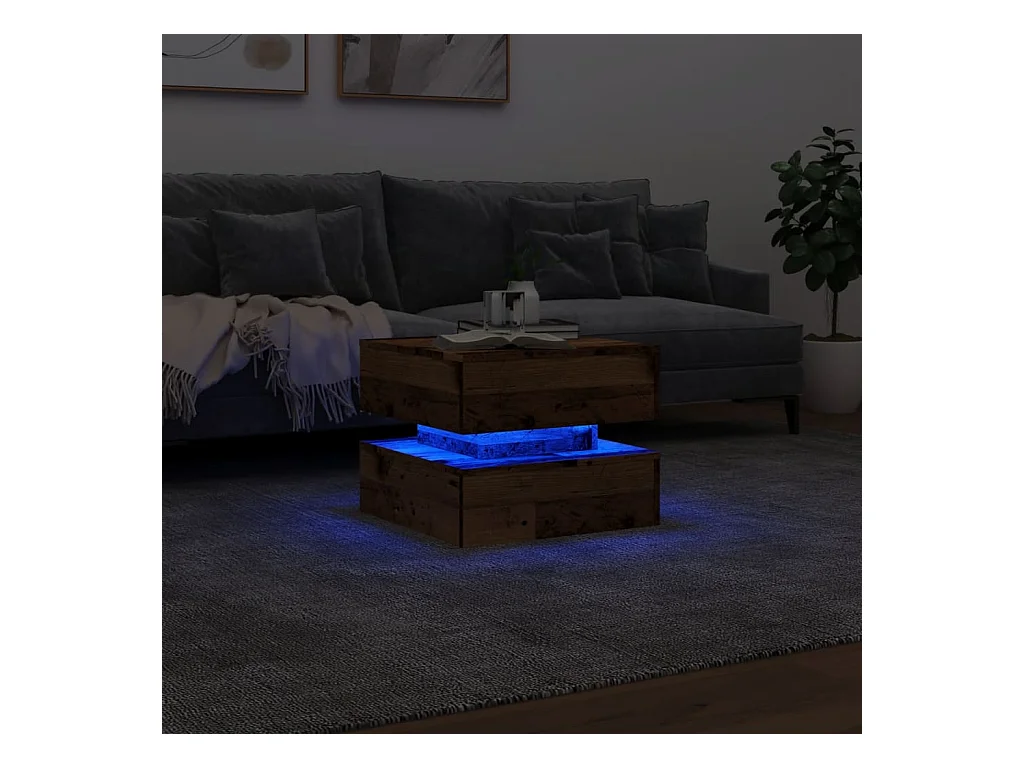 Couchtisch mit LED-Leuchten Altholz-Optik 50x50x40 cm SHL3188
