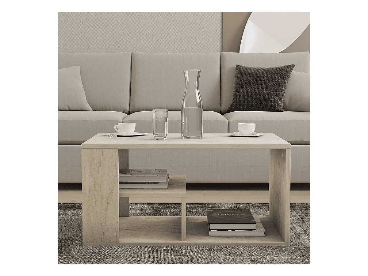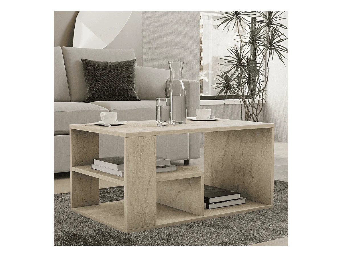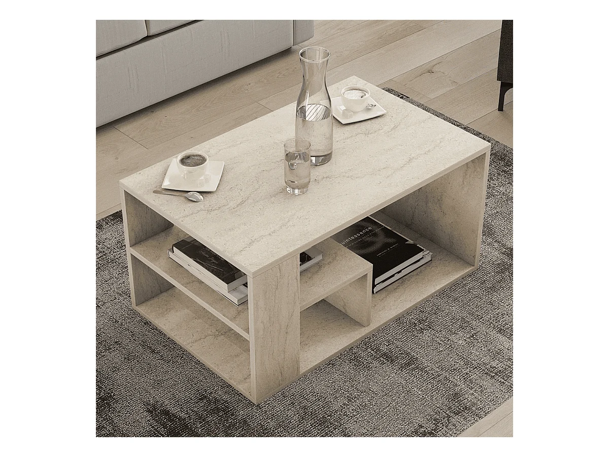 Couchtisch mit Regalböden, Travertin-Dekor L80 cm - EROS