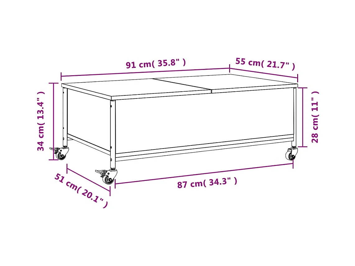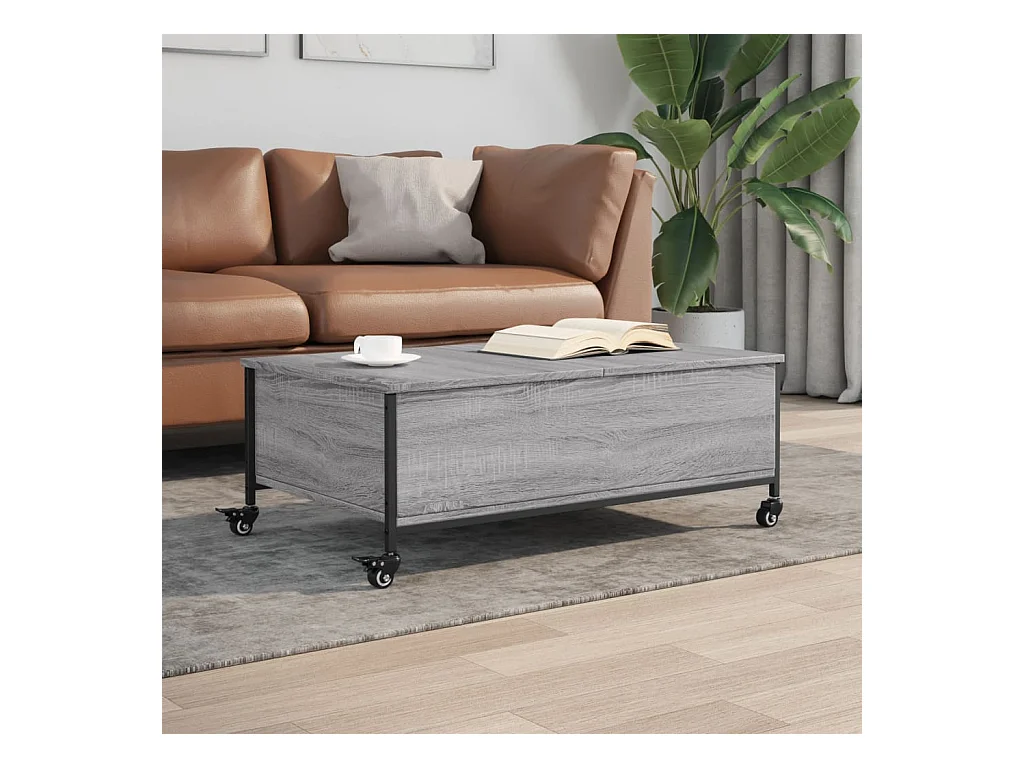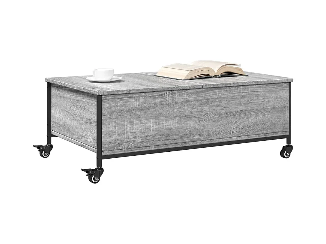 Couchtisch mit Rollen Grau Sonoma 91x55x34 cm Holzwerkstoff